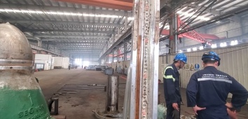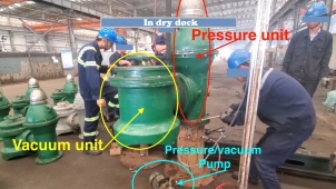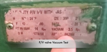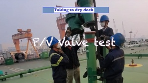 B) P/V Valve (Pressure/Vacuum Valve) test by men in dry dock