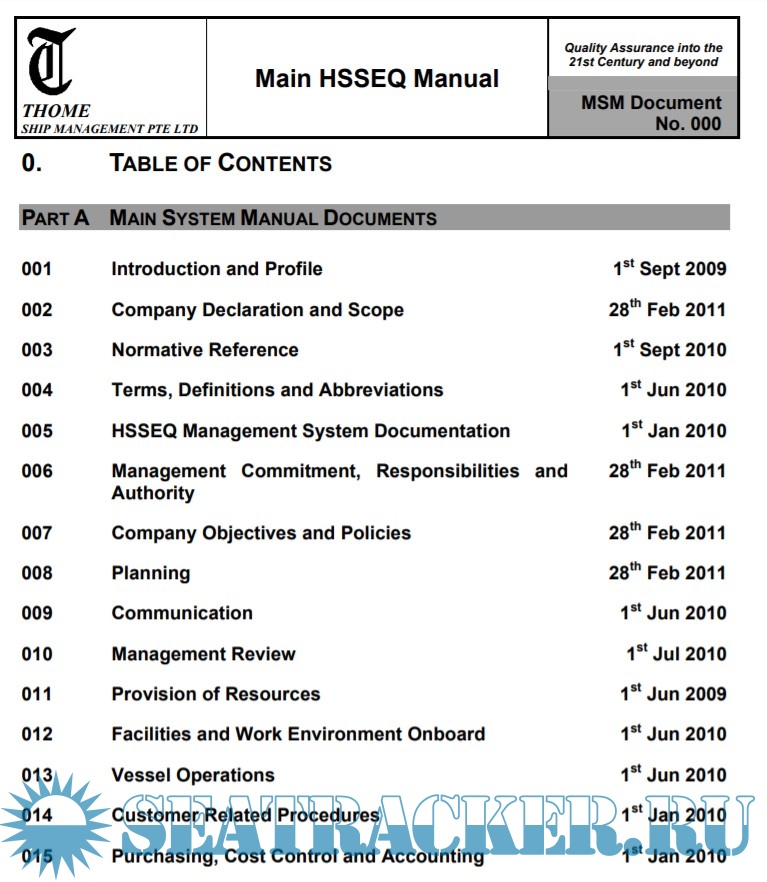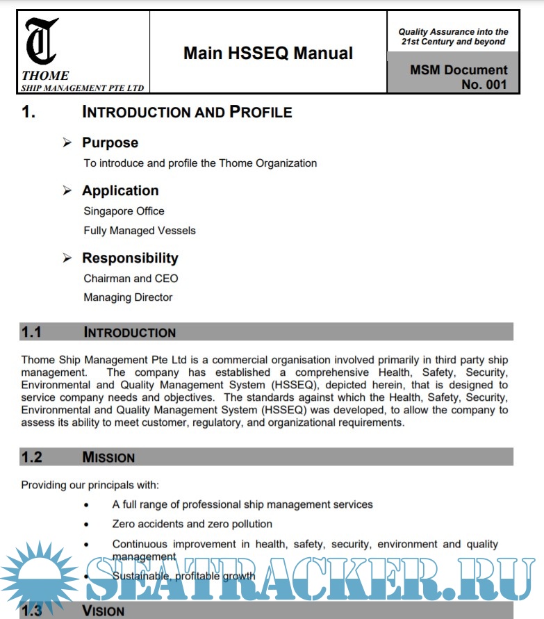 Description: Thome Ship Management HSSEQ (Health, Safety, Security, Environmental and Quality Management System)
