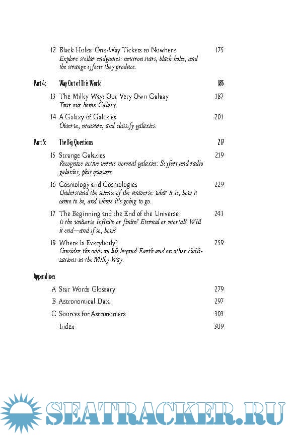 Year: 2008 Language: english Author: Christopher De Pree and Alan Axelrod Genre: Textbook Publisher: Alpha Edition: 4th ISBN: 1-4362-1273-1 Format: PDF Quality: eBook Pages count: 353 Description: Although Astronomy has been around for more than 5,500 years, astronomers say that we've learned more than 90% of what we know about the universe in just the last 50-and much of that in the last decade! The Complete Idiot's Guide(r) to Astronomy, Fourth Edition, continues to be the most comprehensive introduction to the topic, covering all the latest advances and discoveries, including: • The demotion of Pluto and promotion of Ceres as planetary objects • Breakthrough evidence of recent water flow on Mars • New developments in asteroid-tracking programs • New information on the nature and shape of our universe • Mind-bending theories concerning multiple universes • Information on the latest telescopes