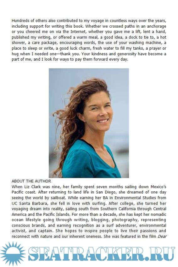 Captain Liz Clark spent her youth dreaming of traveling the world by sailboat and surfing remote waves. When she was 22, she met a mentor who helped turn her desire into reality. Embarking on an adventure that most only fantasize about, she set sail from Santa Barbara, California, as captain of her 40-foot sailboat, Swell, headed south in search of surf, self, and the wonder and learning that lies beyond the unbroken horizon.