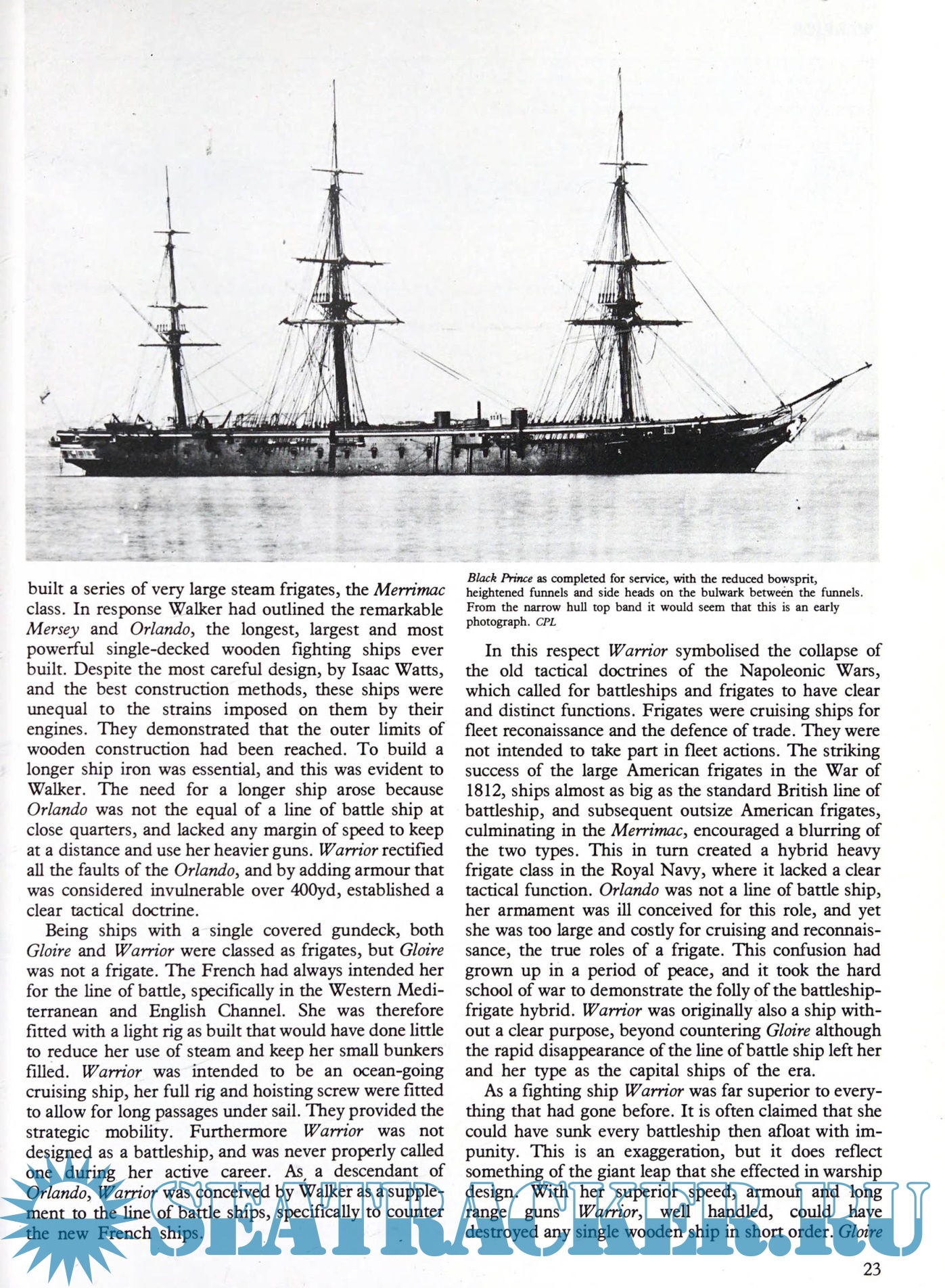 Year: 1987 Language: english Author: Lambert А. Genre: History Publisher: Conway Maritime Press Edition: 1st ISBN: 0851774113 Format: PDF Quality: Scanned pages Pages count: 200 Description: Launched in 1860, Warrior was the first ever iron-hulled, sea-going armoured ship, and for a number of years was the most powerful warship in the world. By a fluke of history the ship also survived to be the last of the broadside ironclads, and was rescued from an obscure existence as a refuelling hulk in West Wales to become the subject of the most ambitious ship restoration project ever mounted. To satisfy the modelmaker, enthusiast and technical historian, the book is illustrated in depth with many of the plans drawn up for the reconstruction, as well as numerous photographs of the ship and her fittings taken during her service career and during reconstruction.