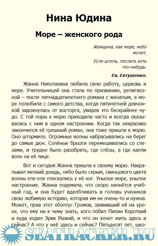 Именно поэтому интересно и увлекательно читать их рассказы о море и женских судьбах…»