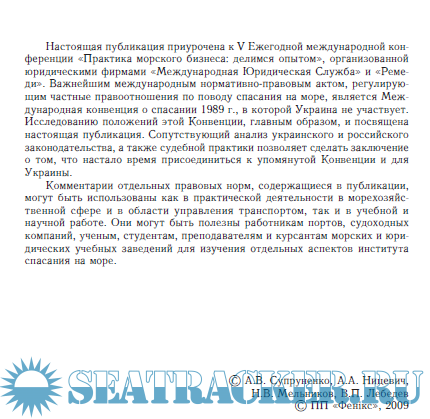 Описание: Книга может быть полезна работникам портов, судоходных компаний, учёным, студентам, преподавателям и курсантам морских и юридических учебных заведений.