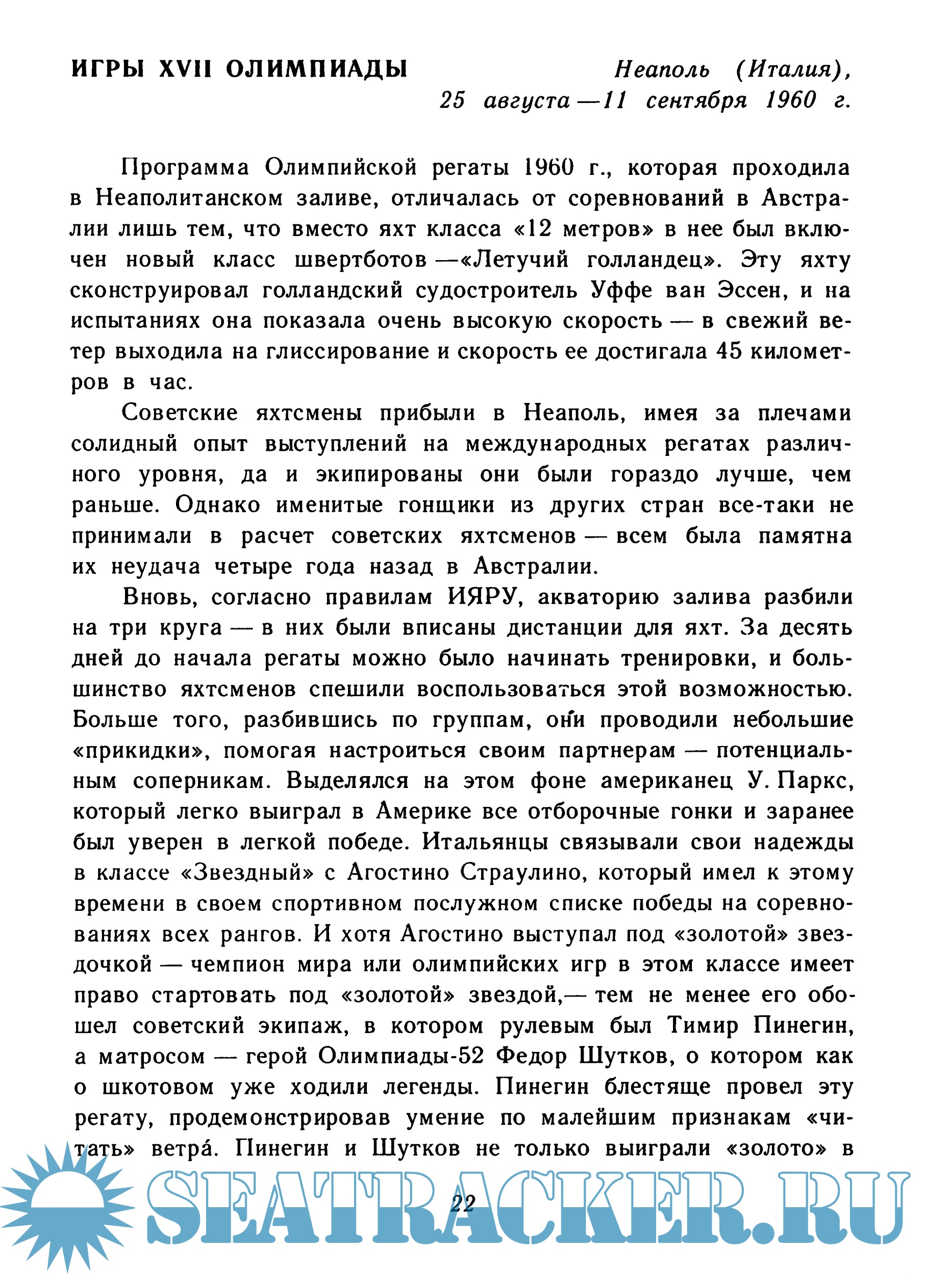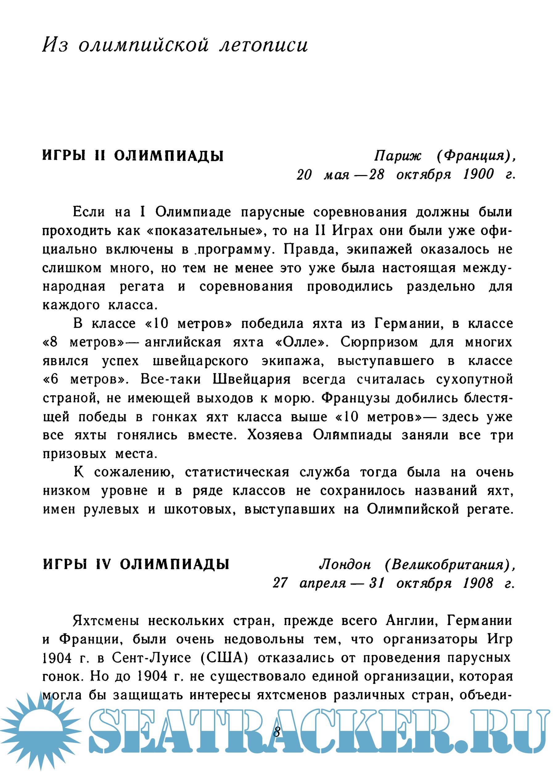 Описание: В справочнике рассказывается об истории развития парусного спорта, о времени включения его в программу олимпийских игр, приводятся краткие сведения о чемпионах и призерах всех Игр, победителях и призерах крупнейших соревнований СССР, Европы и мира, прошедших после Монреальской Олимпиады.