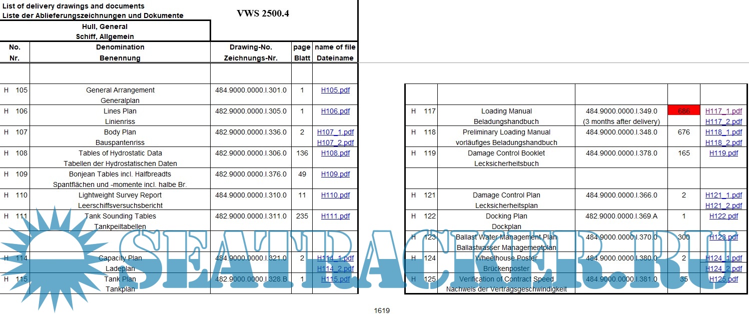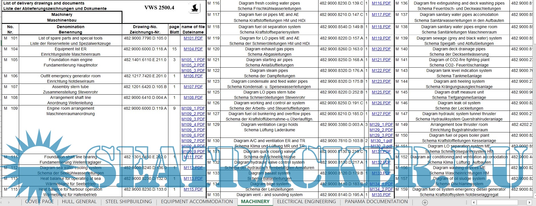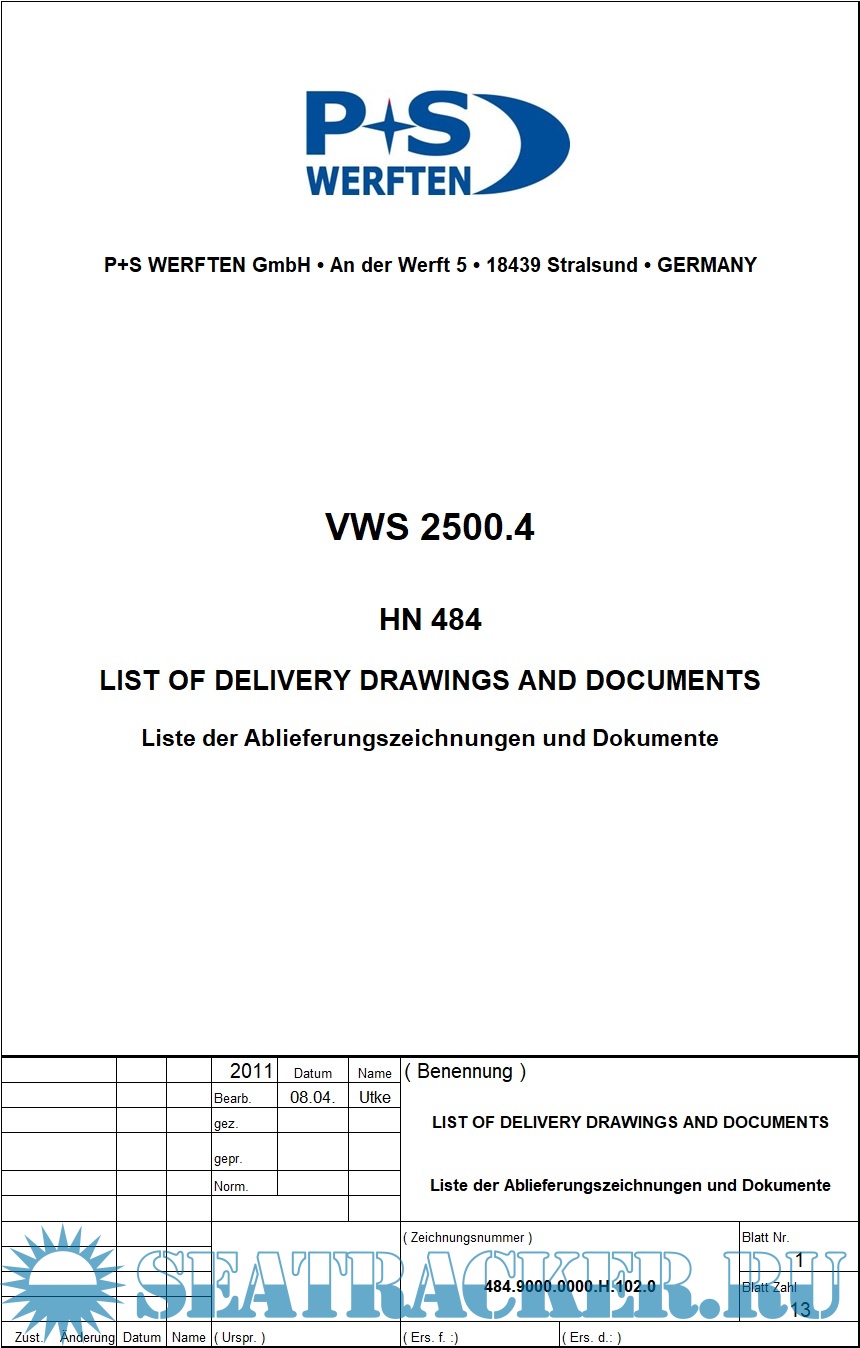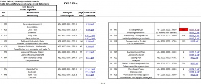 Description: P+S WERFTEN GmbH VWS 2500.4 List of Delivery Drawings and Documents