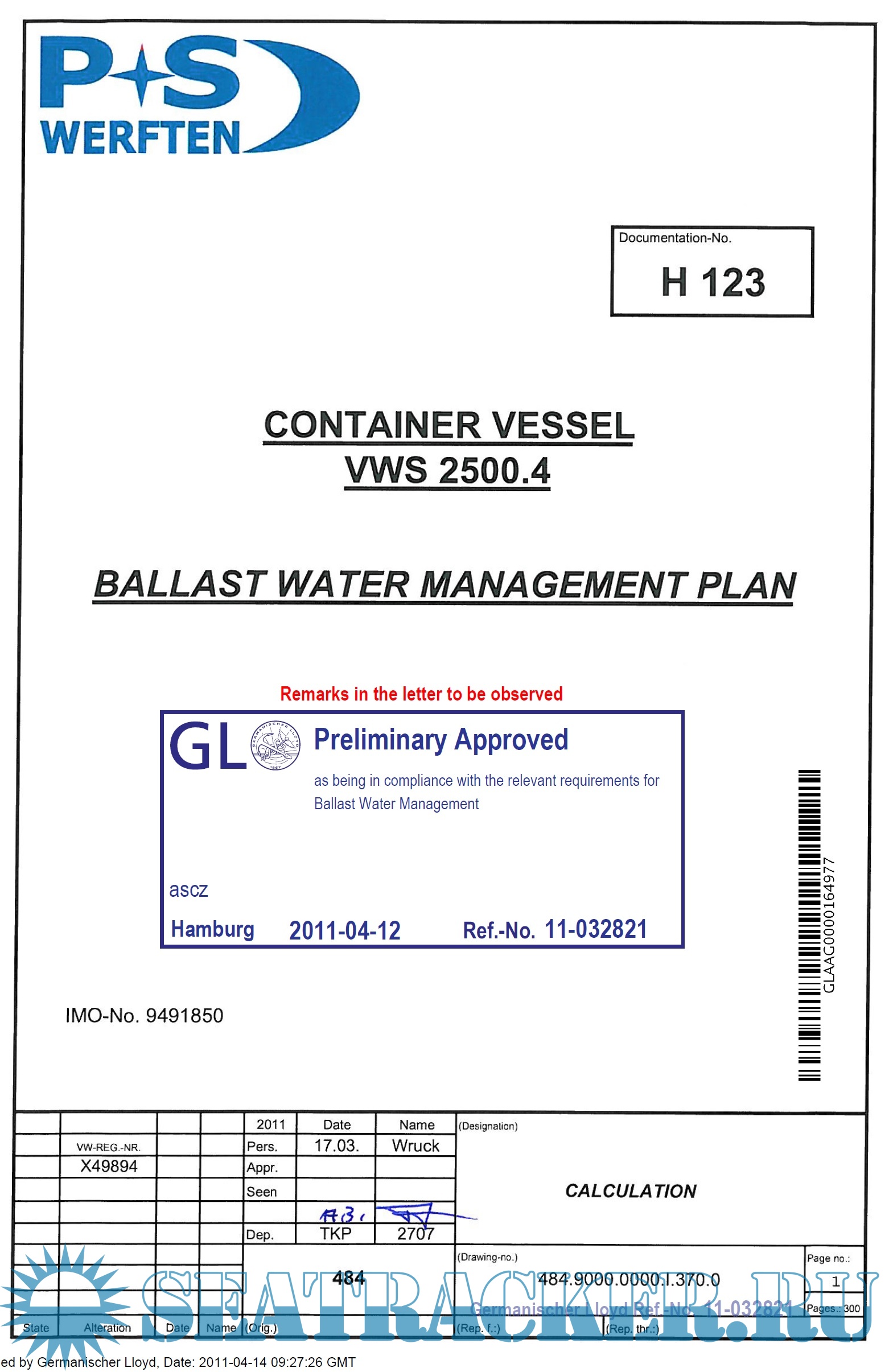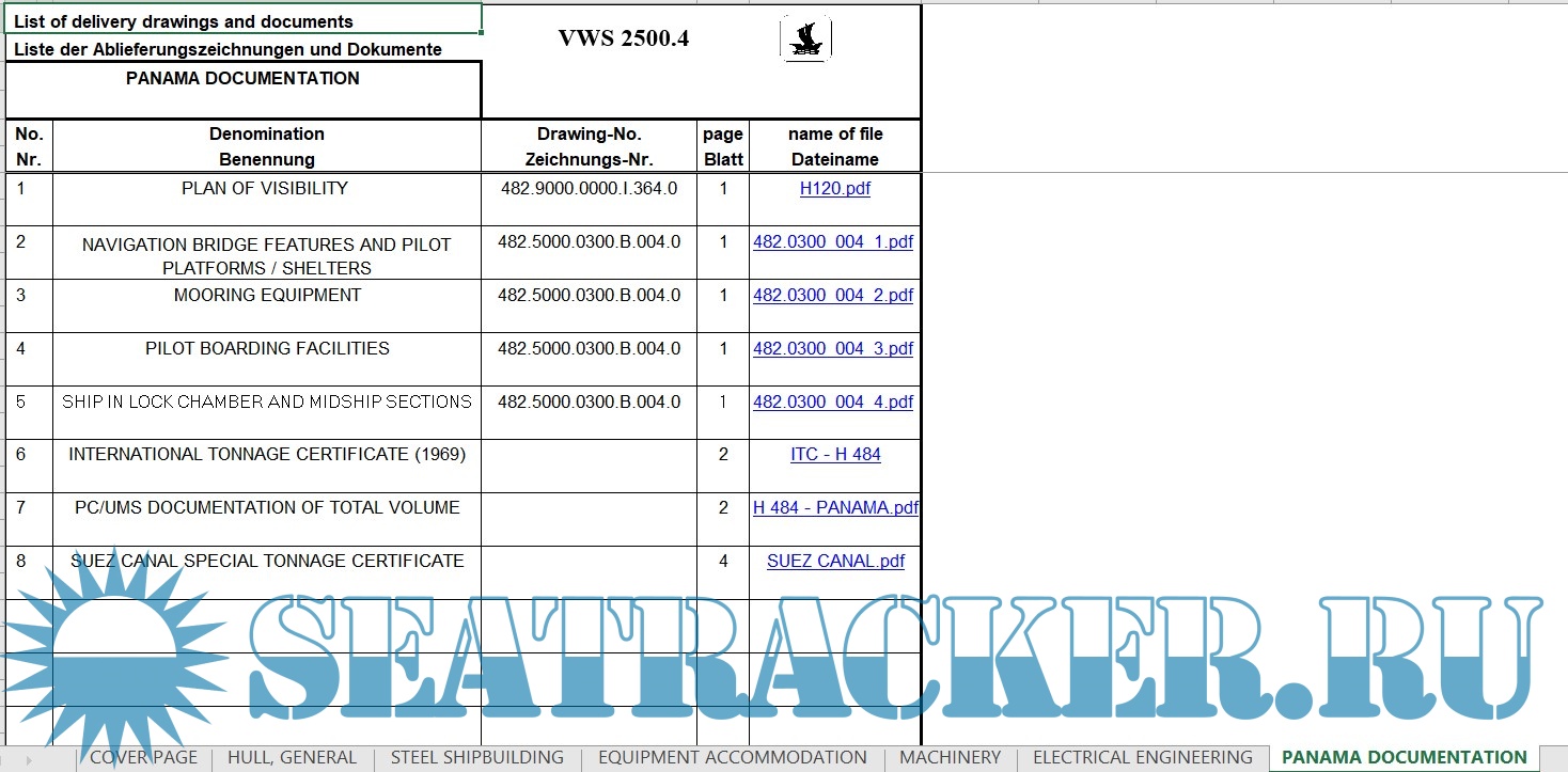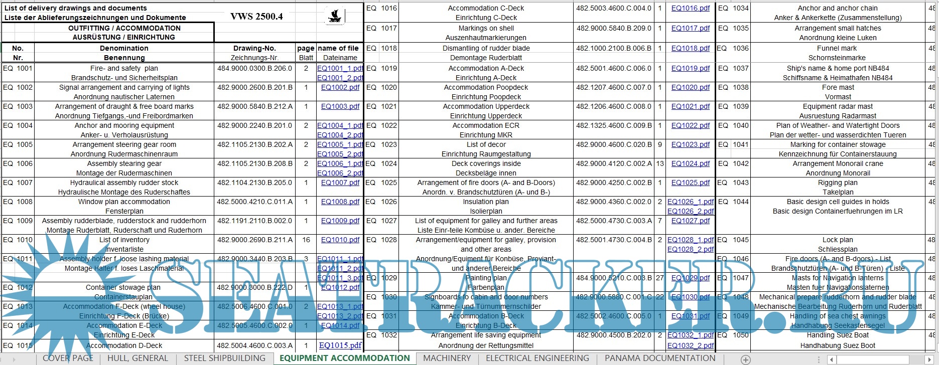 Description: P+S WERFTEN GmbH VWS 2500.4 List of Delivery Drawings and Documents