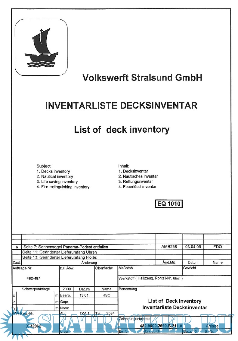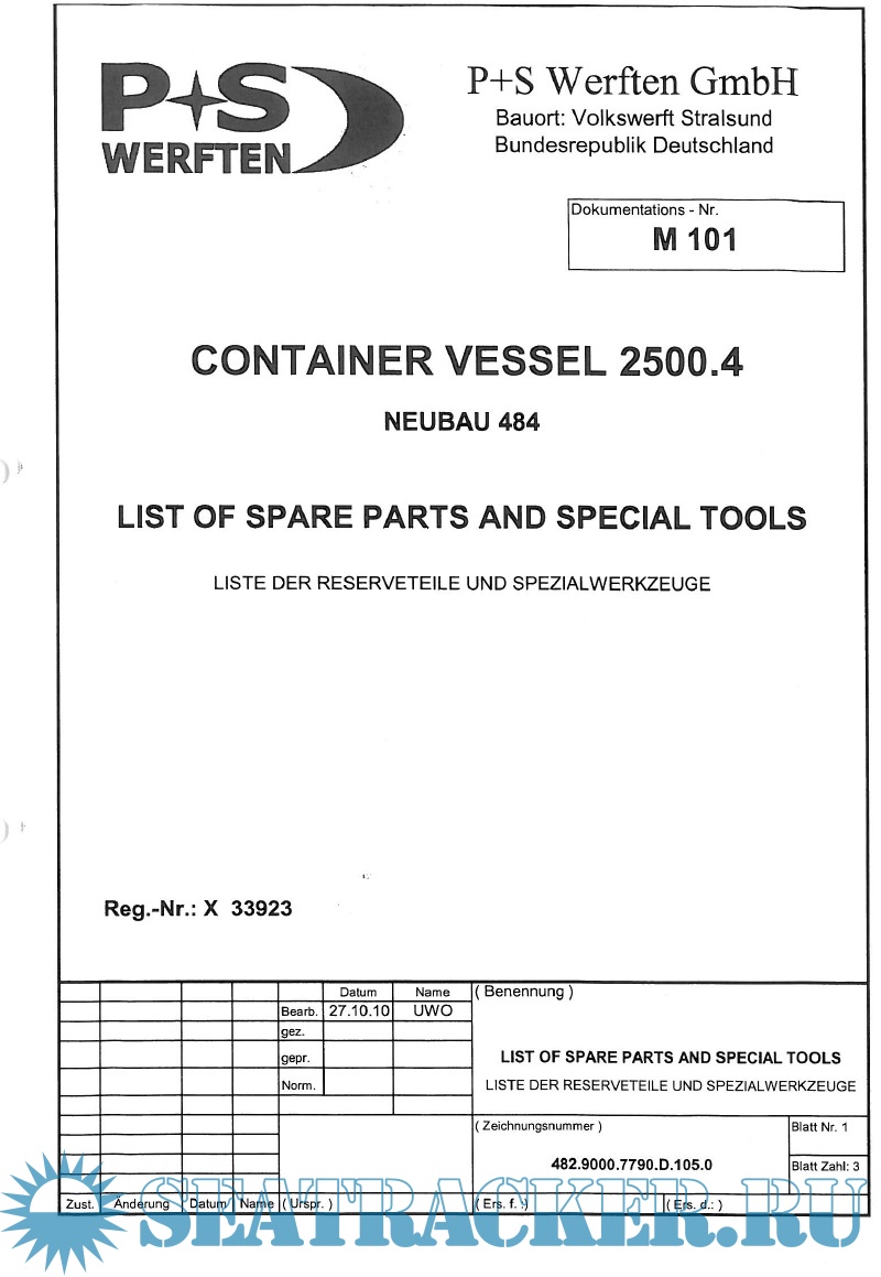 P+S WERFTEN GmbH VWS 2500.4 List of Delivery Drawings and Documents