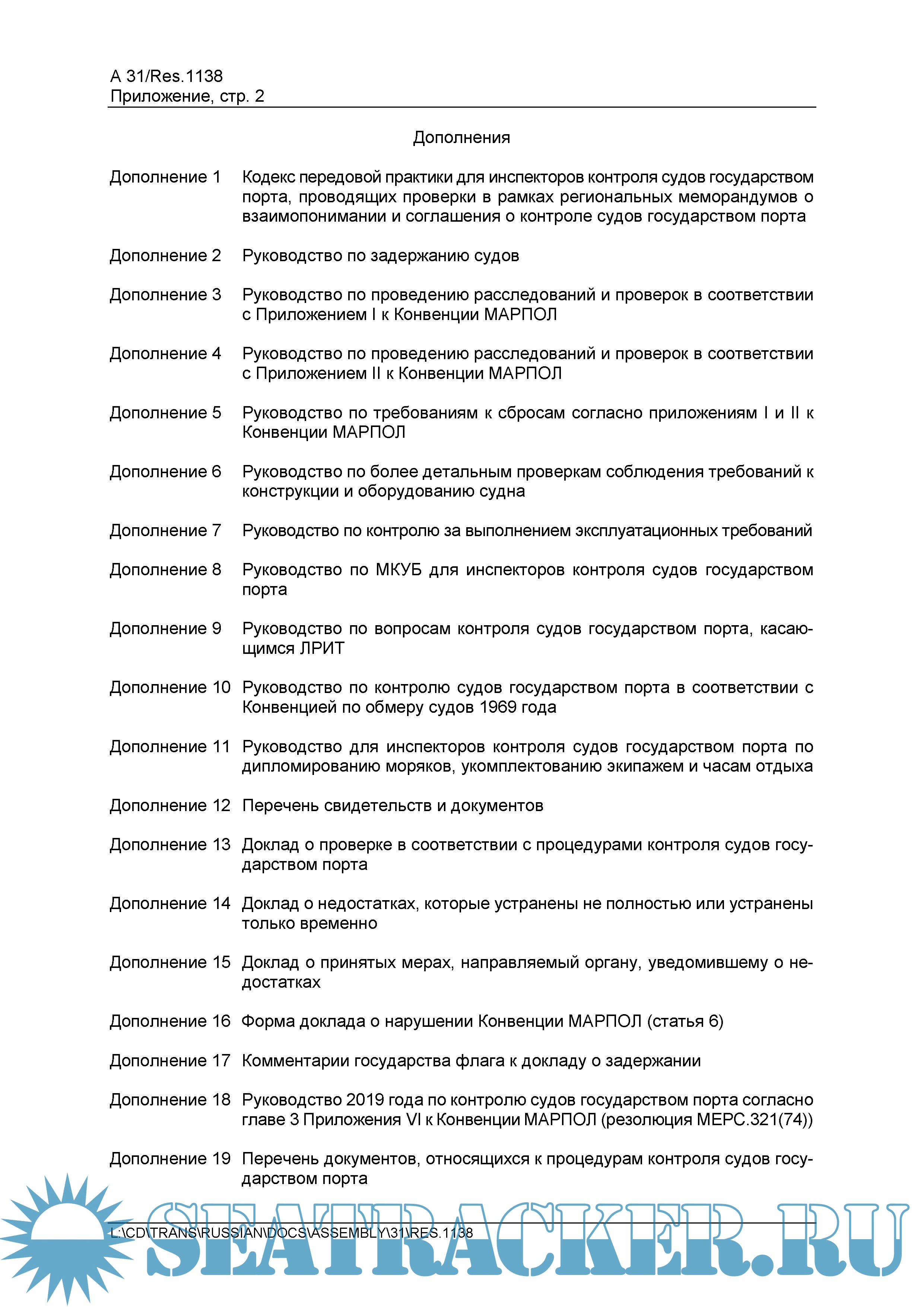 Процедуры контроля судов государством порта 2019 года. Резолюция A.1138(31)