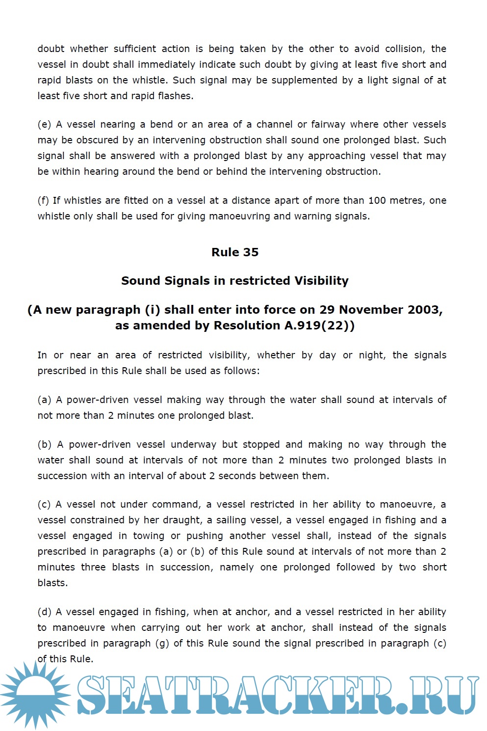 Rule 34 covers manoeuvring and warning signals, using whistle or lights.