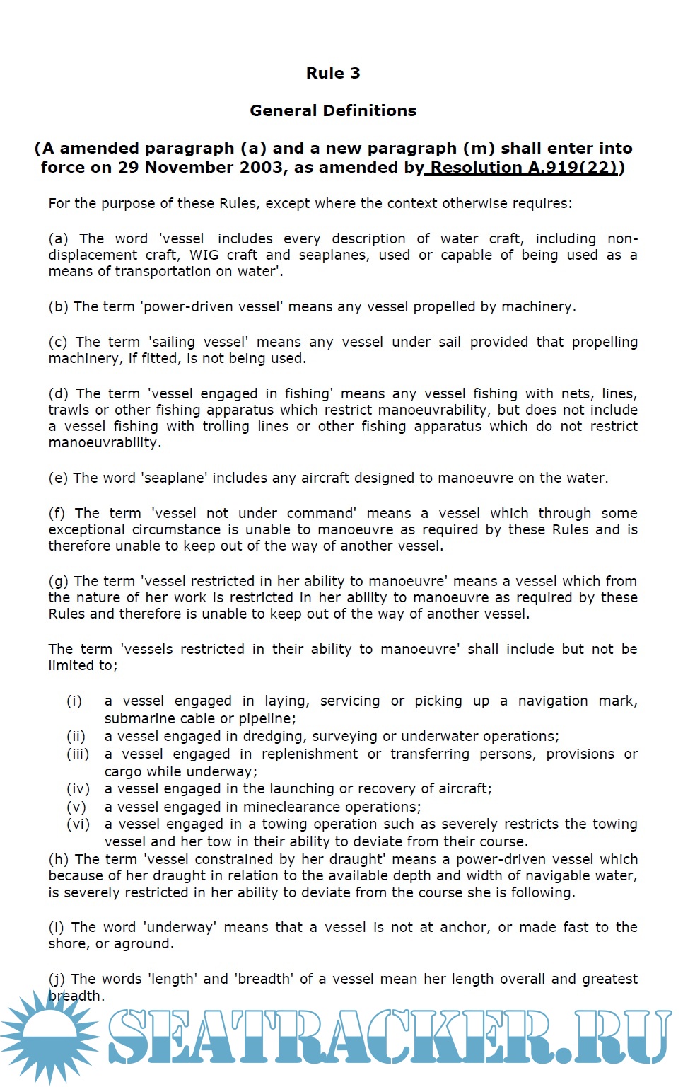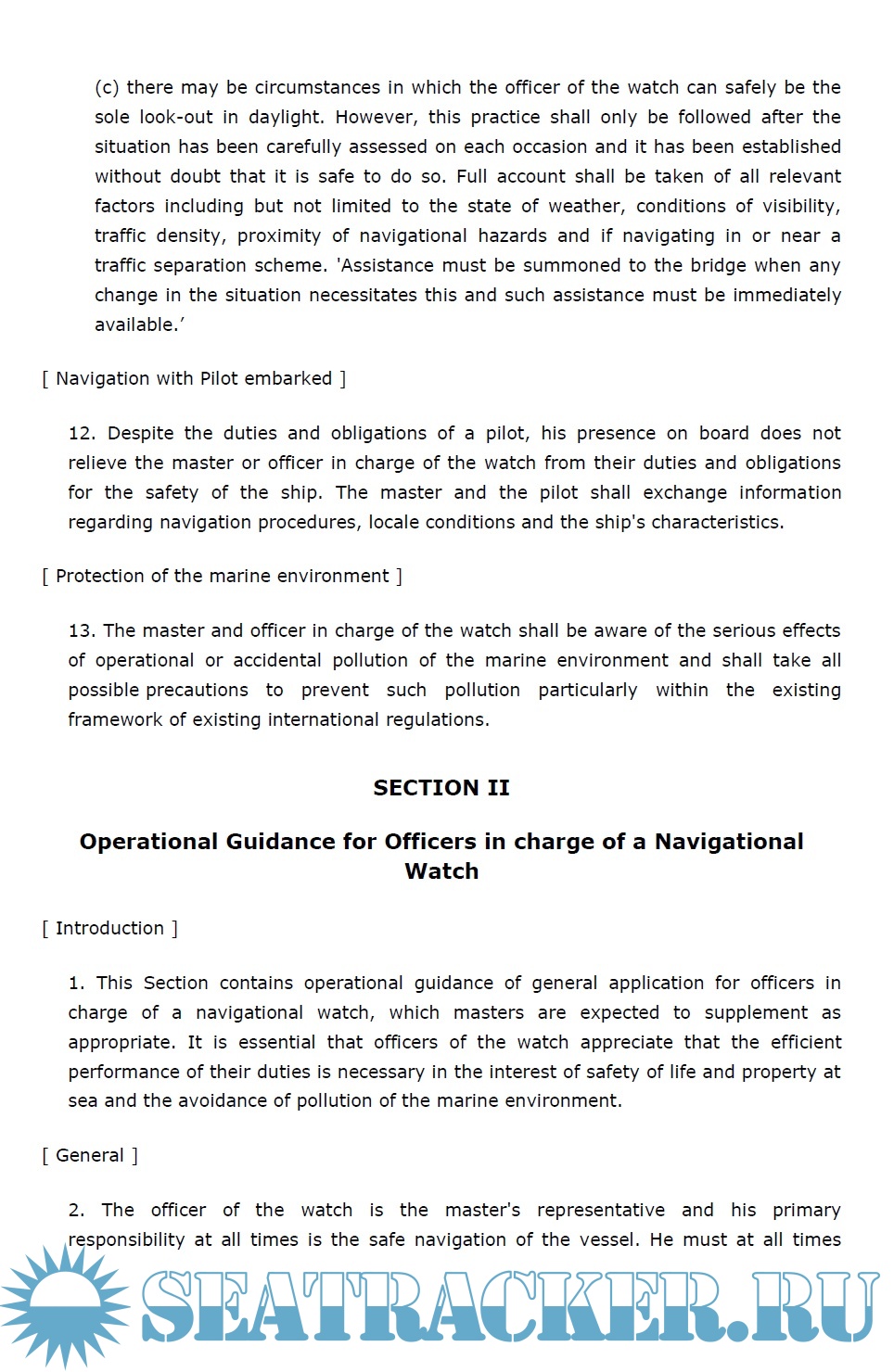 Section II - Conduct of vessels in sight of one another (Rules 11-18)