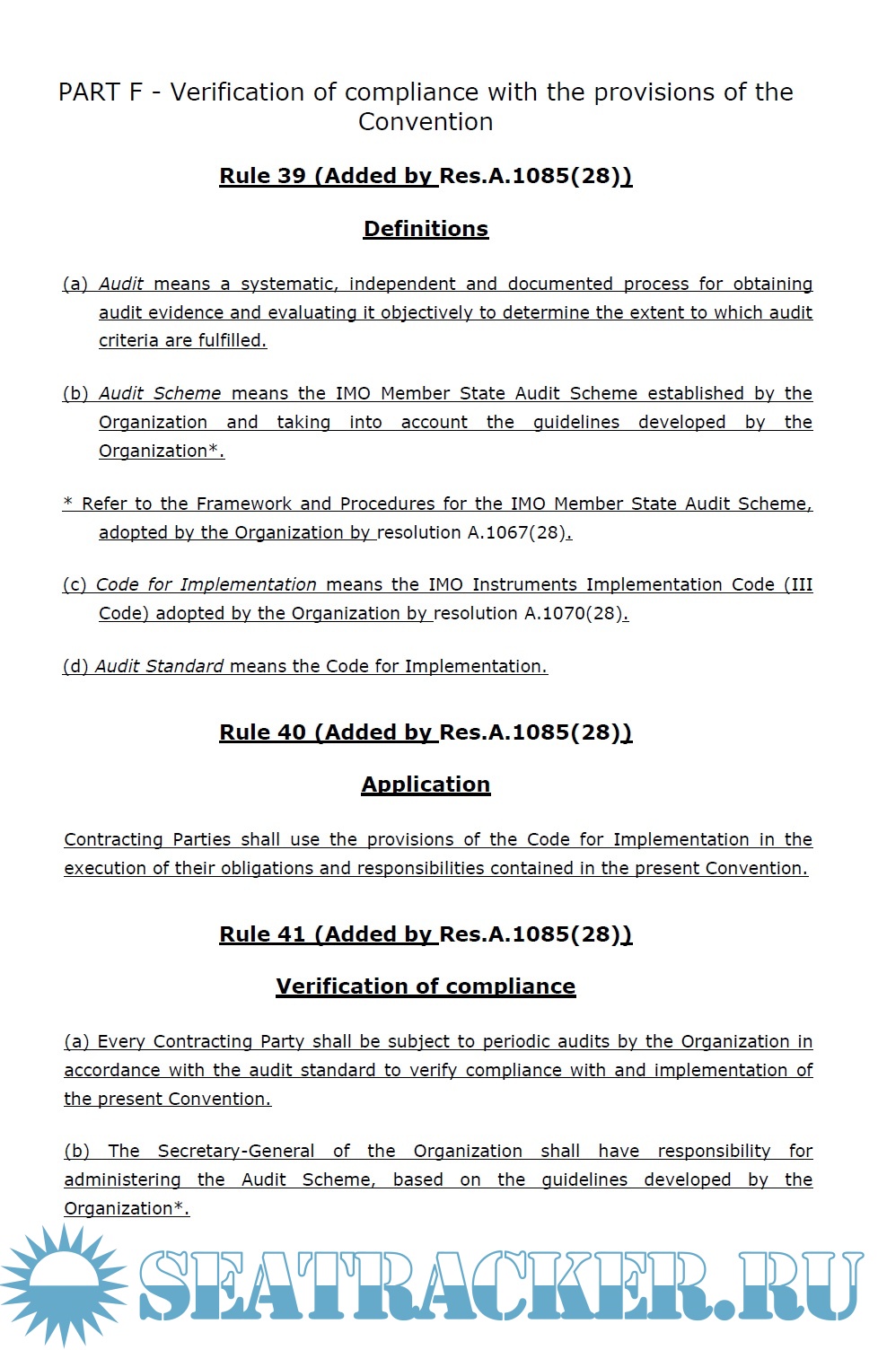 Rule 41 on Verification of compliance says that every Contracting Party is subject to periodic audits by IMO.