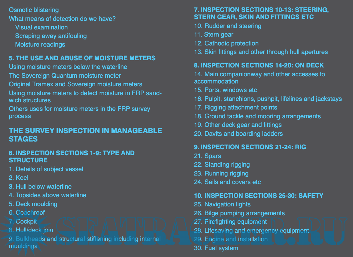 Featuring surveying bodies, equipment required, assessing defects (including moisture-related defects, and the use of moisture meters) and their severity, the book guides the reader through conducting a thorough inspection, from keel to topsides, coachroof, stern gear, rigging and much more.