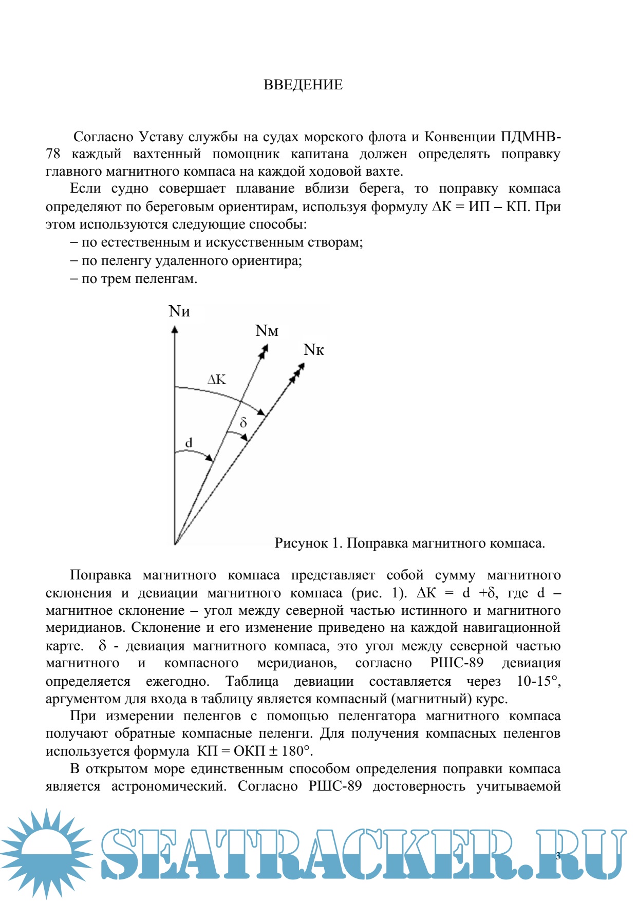 Астрономическое определение поправки компаса в море - Методические указания к выполнению лабораторных работ по мореходной астрономии