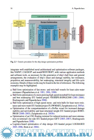 Year: 2019 Language: english Author: Apostolos Papanikolaou Genre: Textbook Publisher: Springer International Publishing Edition: 1st ed. ISBN: 978-3-030-02809-1, 978-3-030-02810-7 Format: PDF Quality: eBook Pages count: 501 Description: This book introduces a holistic approach to ship design and its optimisation for life-cycle operation. It deals with the scientific background of the adopted approach and the associated synthesis model, which follows modern computer aided engineering (CAE) procedures. It integrates techno-economic databases, calculation and multi-objective optimisation modules and s/w tools with a well-established Computer-Aided Design (CAD) platform, along with a Virtual Vessel Framework (VVF), which will allow virtual testing before the building phase of a new vessel. The resulting graphic user interface (GUI) and information exchange systems enable the exploration of the huge design space to a much larger extent and in less time than is currently possible, thus leading to new insights and promising new design alternatives. The book not only covers the various stages of the design of the main ship system, but also addresses relevant major onboard systems/components in terms of life-cycle performance to offer readers a better understanding of suitable outfitting details, which is a key aspect when it comes the outfitting-intensive products of international shipyards. The book disseminates results of the EU funded Horizon 2020 project HOLISHIP.