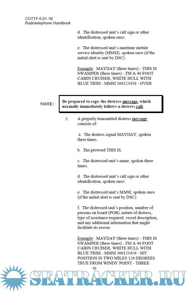 Description: The Radiotelephone Handbook is a user’s guide addressing proper radiotelephone procedures. It is intended for field use. It resumes the International Telecommunication Union (ITU) radio regulations, and specific radio procedures used by Coast Guard into a single source reference. It is intended to provide guidance for Coast Guard personnel. This revision includes clarification regarding the use of the term “MAYDAY” during distress communications, provides an example of a “MAYDAY RELAY” transmission, and also specifies when and how to include maritime mobile service identify (MMSI) information.