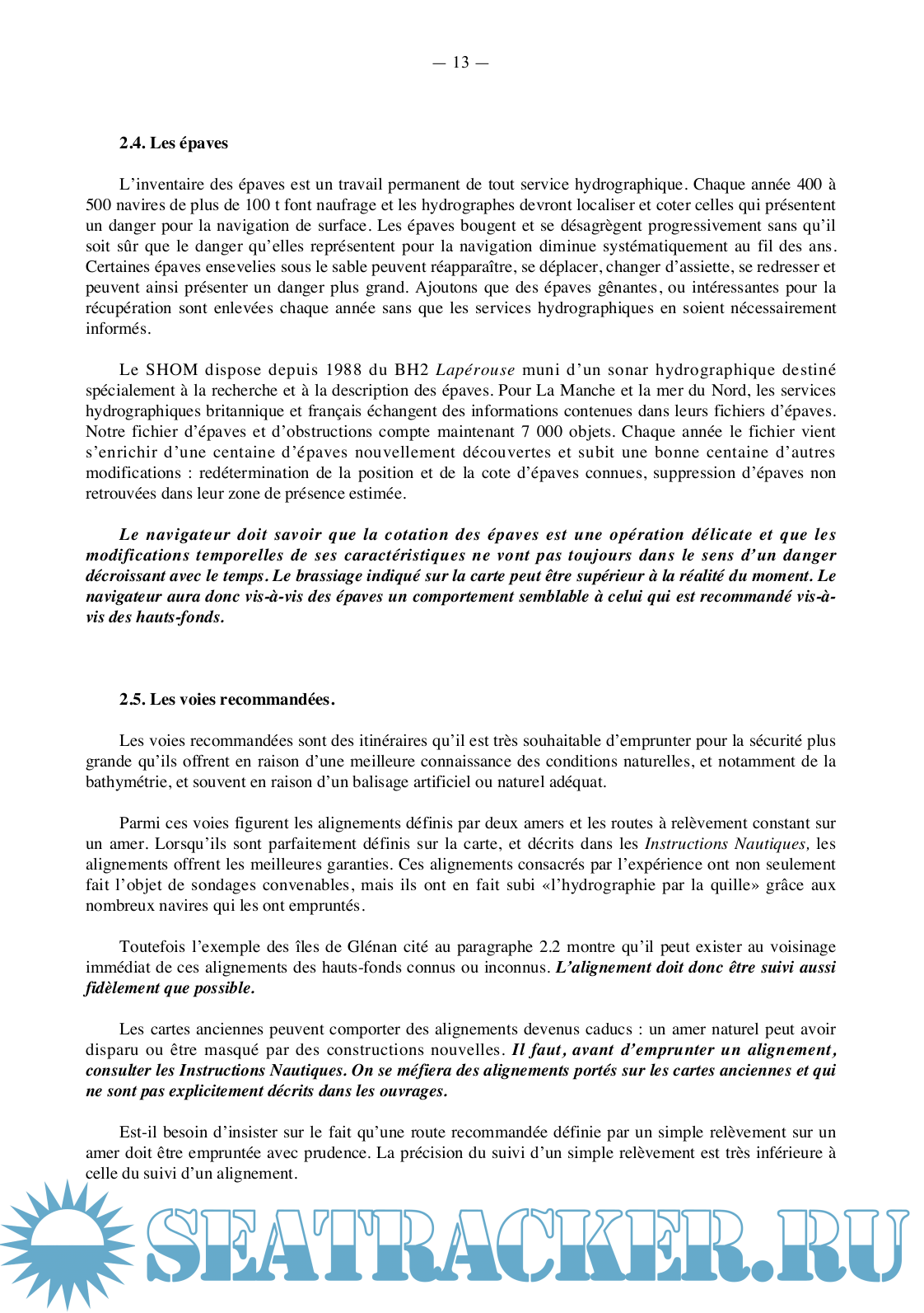 - des règles et conseils pour le bon usage des documents nautiques ;