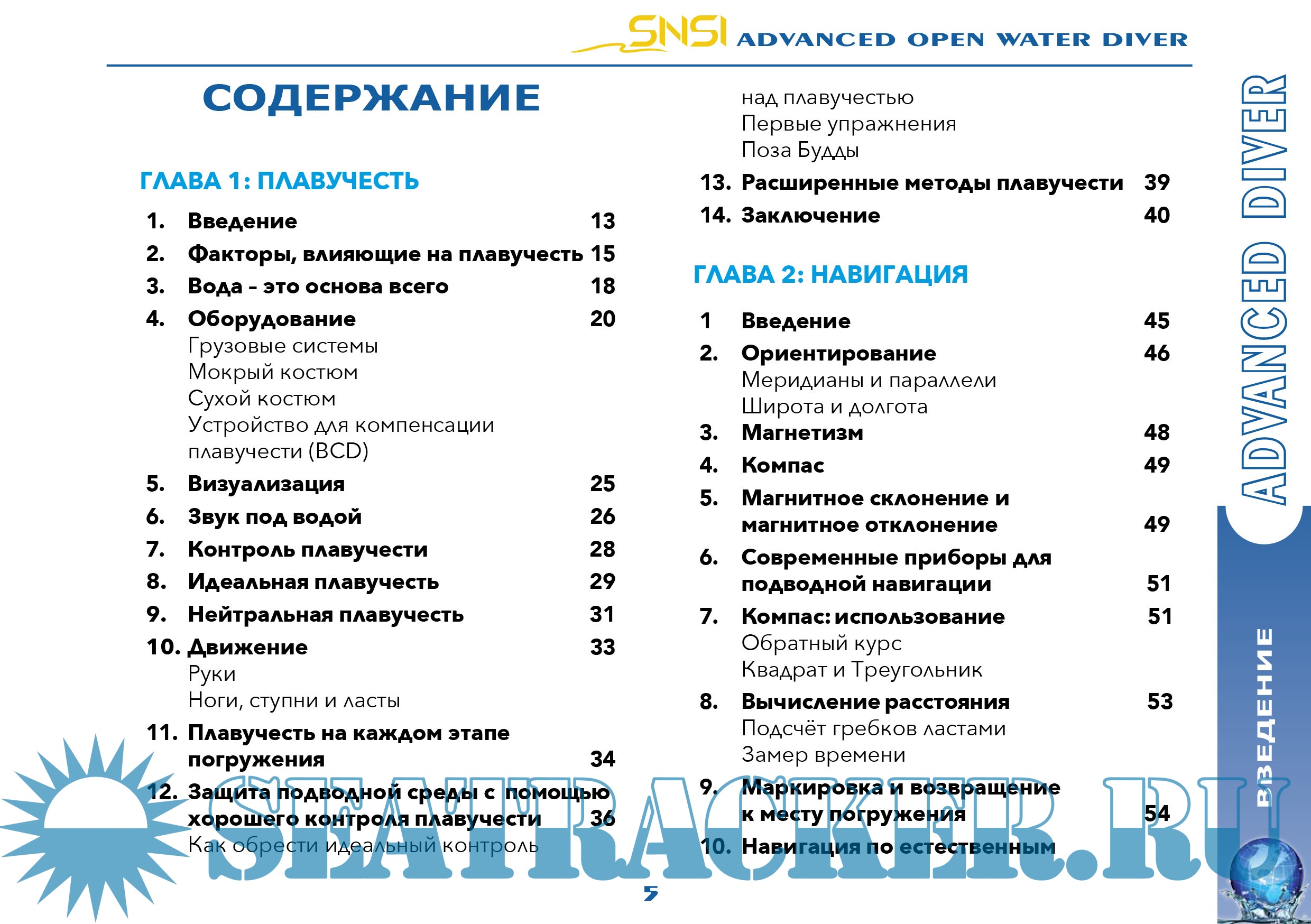 Учебник к курсу "Advanced Open Water Diver" SNSI