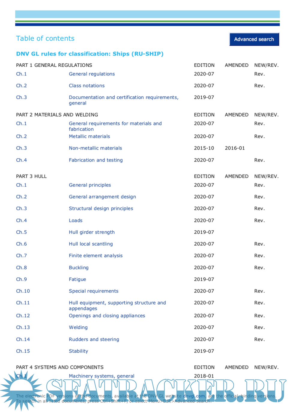 The electronic PDF versions of the documents, available at the DNV GL website dnvgl.com, are the official, binding versions. To search in all listed documents, press Ctrl+Shift+F, or select Menu>Edit>Advanced search.