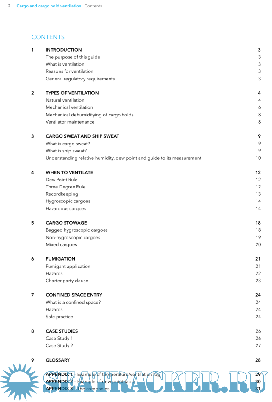 Description: This guide has been produced to provide vessel Masters and crew with a clear and concise understanding of the ventilation requirements for various dry bulk and bagged cargoes. Such awareness will assist in preventing claims for cargo damage, contamination, additional survey costs, delays to ships, avoiding disputes over off-hire and charter party issues, and most importantly averting accidents and injury to crew and other personnel.