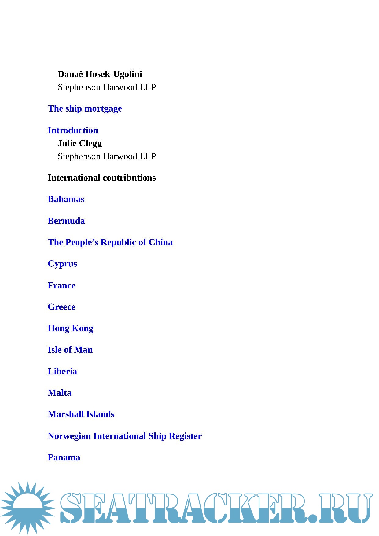 In addition, Shipping Finance provides an extensive discussion of the procedure and documentation for registering ships on a country-by-country basis, with detailed advice from local experts.