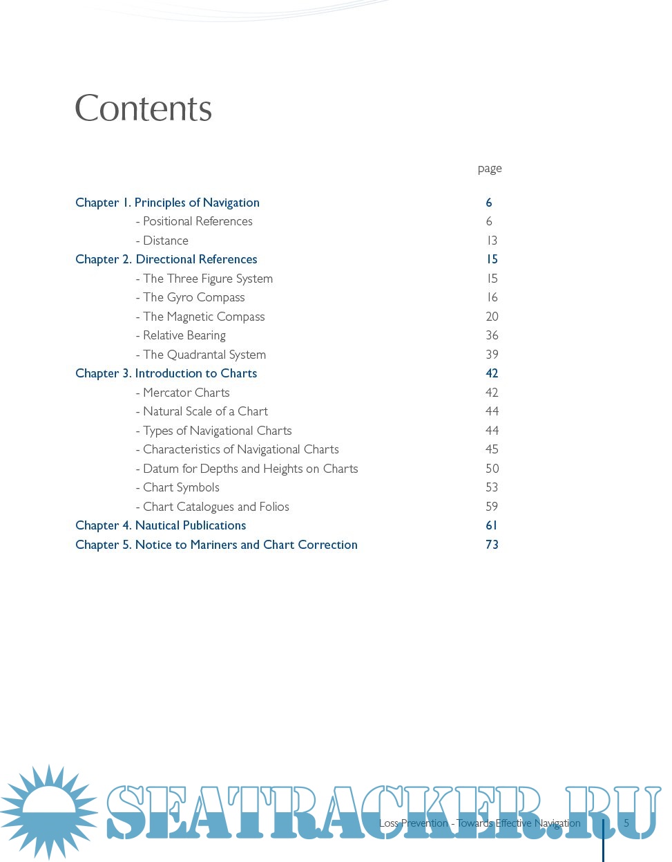 Year: 2014 Language: english Author: The Shipowners’ Club Genre: Handbook Publisher: The Shipowners’ Club Format: PDF Quality: eBook Pages count: 45 Description: The purpose of this booklet is to open the window on navigation in a very basic way. It is primarily aimed at those mariners who are not fully trained in the art of navigation, to give a better understanding on the subject. It deals with the basic principles of navigation, such as positioning, distance, and chart reference, magnetic and gyro compass, introduction to chart, scale, projections, datums and smbols. An overview on nautical publications, chart correction and notice to mariners is included. Reference: UKHO charts. Additional info: 88 pages in the book, 45 in the pdf