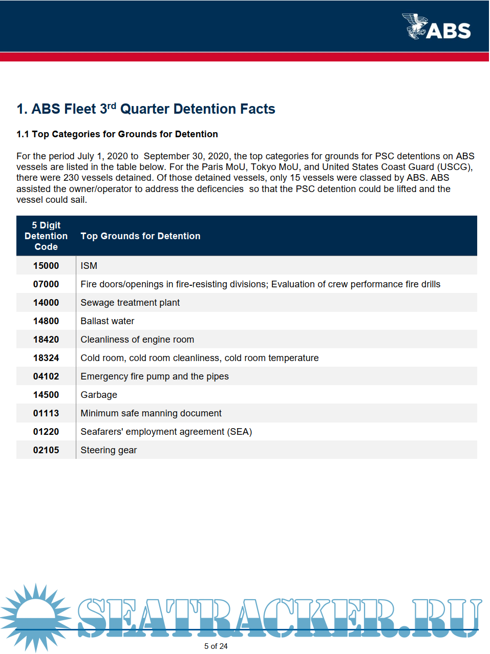Description: This ABS Quarterly Report on Port State Control (PSC) provides information to owners on deficiencies