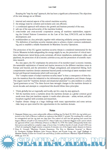The document is covering the naval security aspects in different regions of the planet, including the piracy-prone area of the East Africa. In addition, the book outlines the policy challenges that commonly arise as a result of the maritime terrorism, international organized crime, etc. The authors have analyzed all consequences posed by the maritime security of today’s world, paying all due attention to the naval strategy.