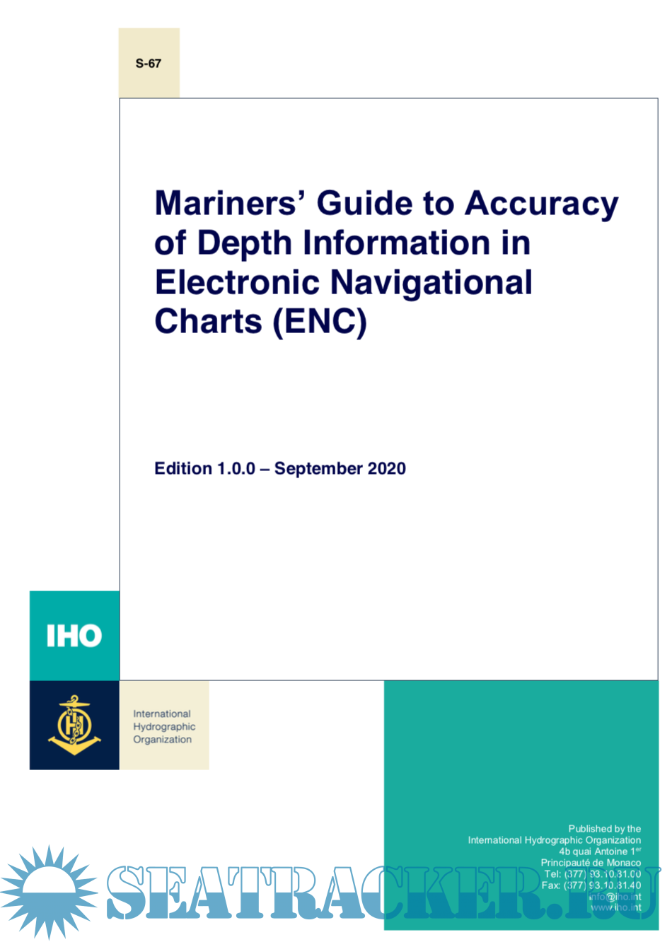 Description: IHO publication S-67 “Mariners Guide to Accuracy of Depth Information in ENC” is a guide to navigators, and navigator training organizations, on the degree of confidence they should have in the adequacy and accuracy of charted depths and their positions in an Electronic Navigational Chart.