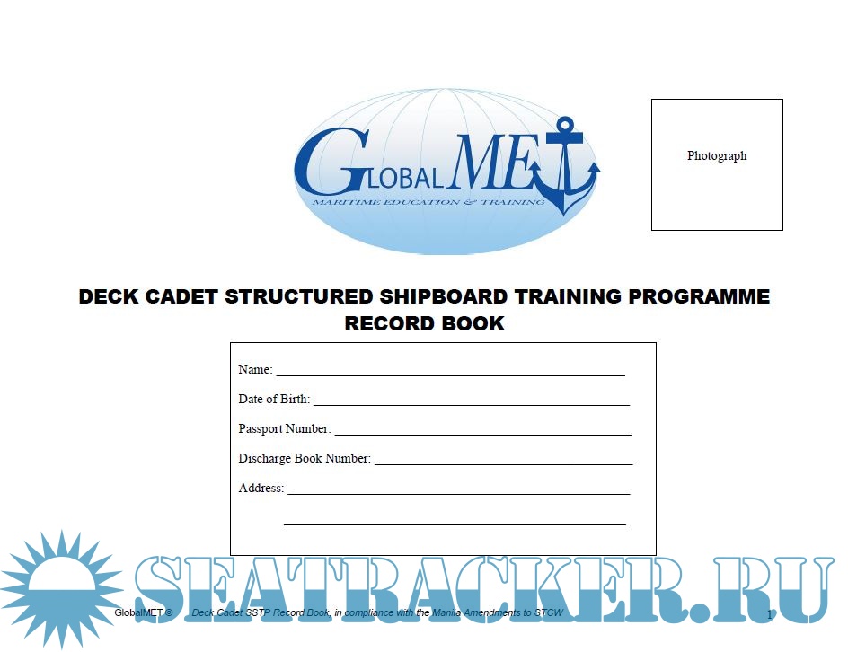 Description: This Deck Cadet Structured Shipboard Training Program Record Book has been produced by the Global Maritime Education and Training Association (GlobalMET Limited) following participation in the STCW CONF in Manila in June 2010, which adopted the Manila Amendments to the International Convention on Standards of Training Certification and Watchkeeping for Seafarers 1978 (STCW 2010).