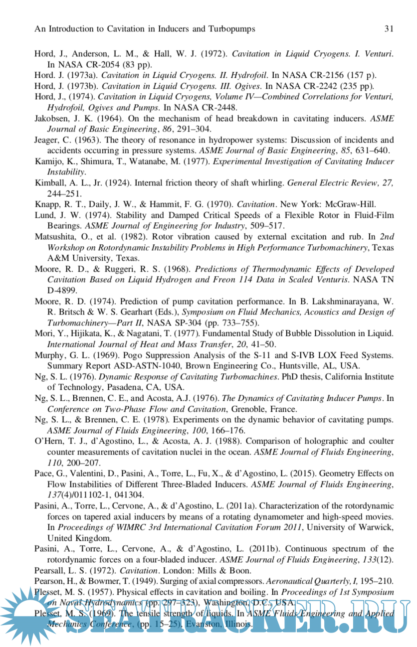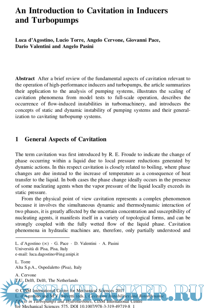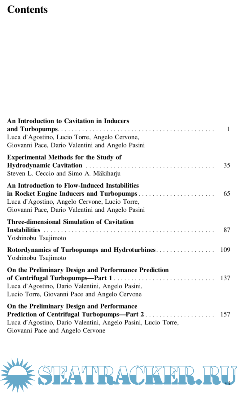 Description: The attainment of higher power densities in modern hydraulic turbomachinery is invariably obtained by running the impeller at the maximum allowable speed and lower shaft torque. Accordingly, operation under cavitating conditions can occur under special circumstances in hydroturbines and nuclear power plant cooling systems and is often tolerated in liquid propellant rocket feed systems, exposing the machine to the onset of dangerous self-sustained, cavitation-induced fluid dynamic and rotordynamic instabilities. Since these phenomena actually represent the major source of life and reliability degradation of the machine, fundamental information on their nature and behavior is of crucial importance for the effective design of today’s high-performance hydraulic turbomachinery. However, the extreme com- plexity and imperfect understanding of the phenomena involved pose formidable obstacles to the modeling, prediction, and control of cavitation-induced instabilities. For this reason, nowadays theoretical analyses and simulations alone are still of limited value for the solution of specific technical problems and progress in this field must rely on the support of dedicated experimentation.