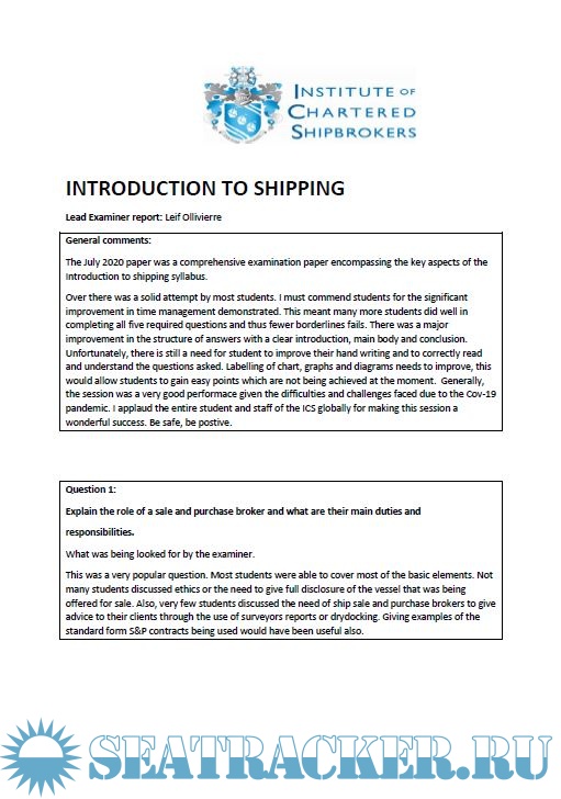 Description: Past exam papers and reports are a great resource for study. You can use them to give yourself a sense of what Institute of Chartered Shipbrokers' examiners expect of you, but you can also use them for practice.