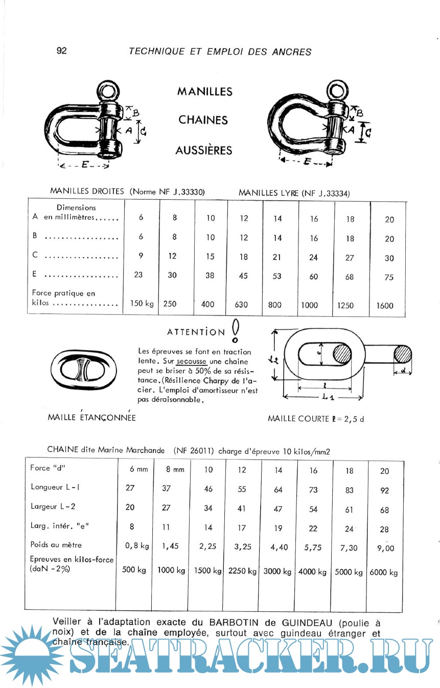 Description: This booklet is a fascinating and comprehensive manual that deals in depth with anchor types and their characteristics, resistance under load, nomenclature, forces acting on the ship, types of seabed, and holding power. Data are deduced directly from the author's experience and from tests carried out at sea under controlled conditions, in collaboration with the Bureau d'Etudes and the Société Nationale de Sauvetage en Mer. There is no shortage of examples taken from real cases and useful tables with dimensions and mechanical features of lines, chains and hardware.