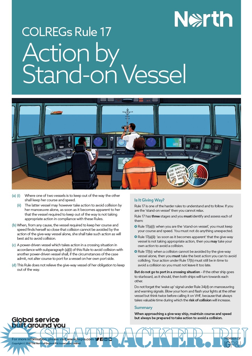 Year: 2019 Language: english Author: North of England P&I Association Publisher: North of England P&I Association Format: PDF Quality: eBook Pages count: 12 Description: North is a marine insurer company focused on safety culture and loss prevention, that also provides technical and operational expertise. These publications are on navigational safety and COLREGs correct interpretation. Each COLREGs Rule is illustrated, explained and briefly commented in a single leaf, intended as a "poster", that can be printed and kept on hand on the deck, ready for reference. Comments not only recall correct interpretation of the rule, but also provides clear explanations, with examples of misinterpretations which can lead to danger. Topics cover Rules 2, 5, 6, 7, 8, 10, 13, 14, 15, 16, 17, 19.