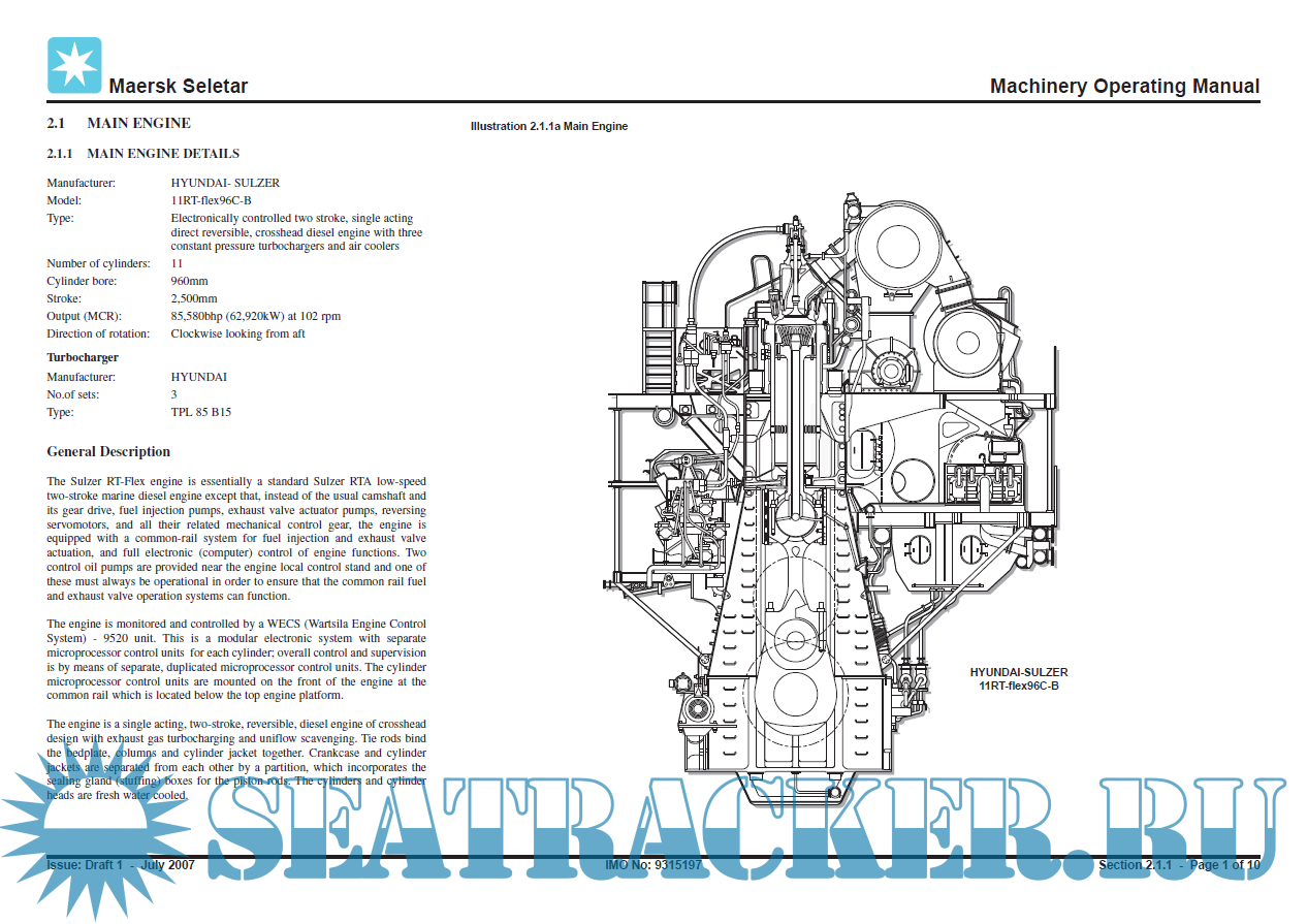 Container MV Maersk Seletar - IMO 9315197 - Machinery Operating Manual - WMT [2007, PDF]