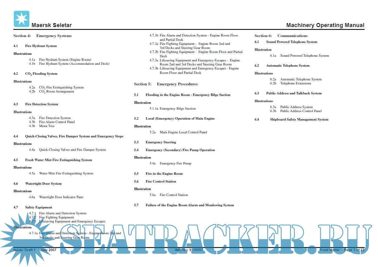 Description: Container Ship Maersk Seletar machinery systems manual including drawings, operating instructions, emergency procedures etc.