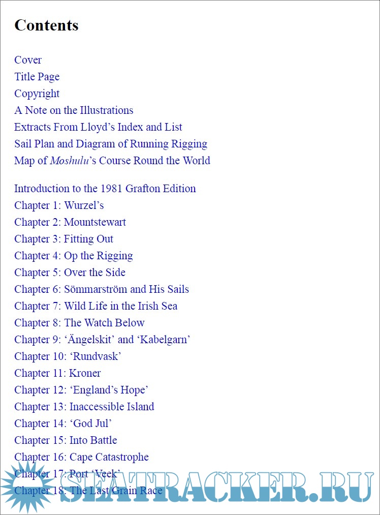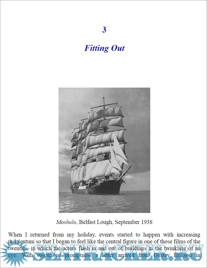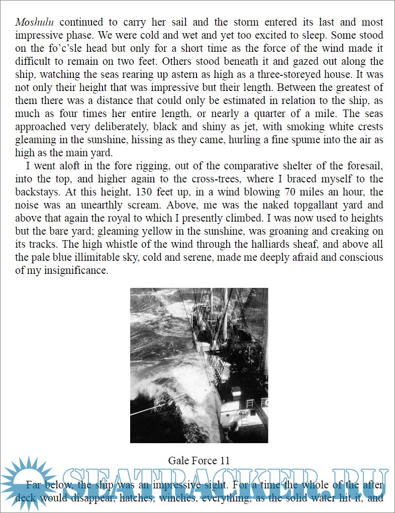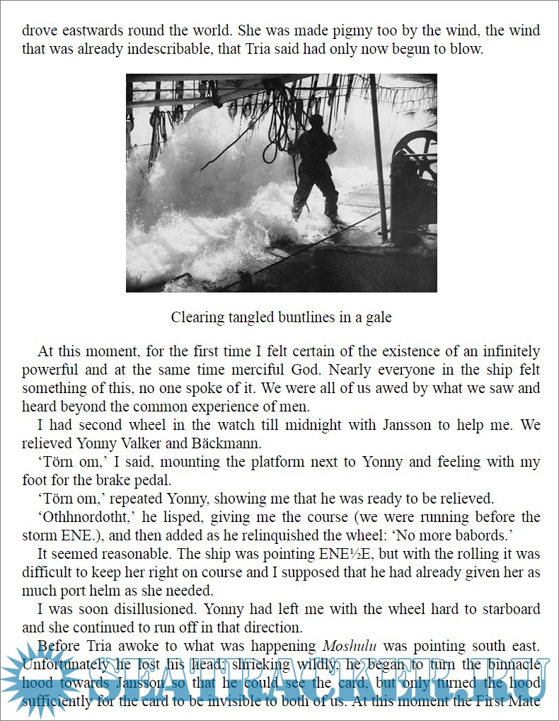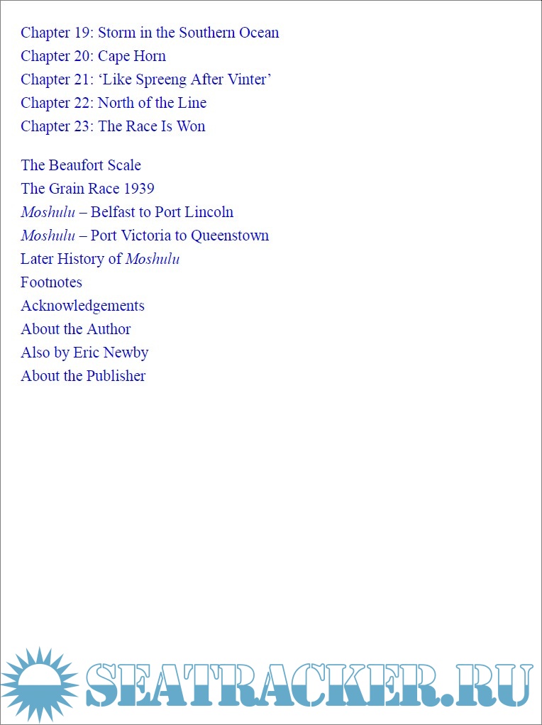 Description: In 1939, at the age of 18, Eric Newby boarded as an apprentice on the four-masted sailing ship Moshulu for the round trip from Europe to Australia and back, outwards by way of the Cape of Good Hope and round Cape Horn. Moshulu was the largest sailing ship still employed in the transportation of grain from Australia to Europe. Every year from 1921 to 1939, the vessels involved in the grain trade competed to find the shortest and fastest passage home, the so-called 'grain race'. The book is a first-hand account of the last 'grain race' of maritime history, and also a story of a voyage and a personal adventure. The author captured the difficulties, the adventure and the danger of life at sea, the storms, the quarrels and the friendship on board, but over all the book is the witness of the passing of the era of great sail ships.