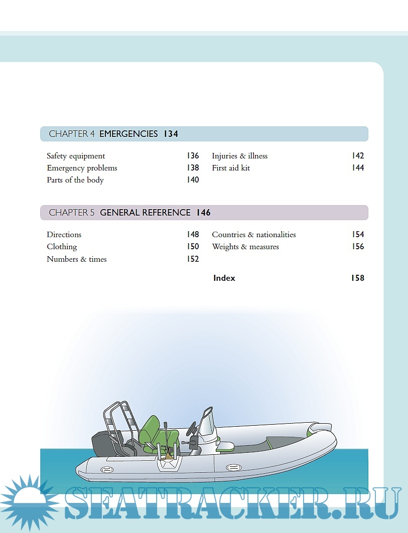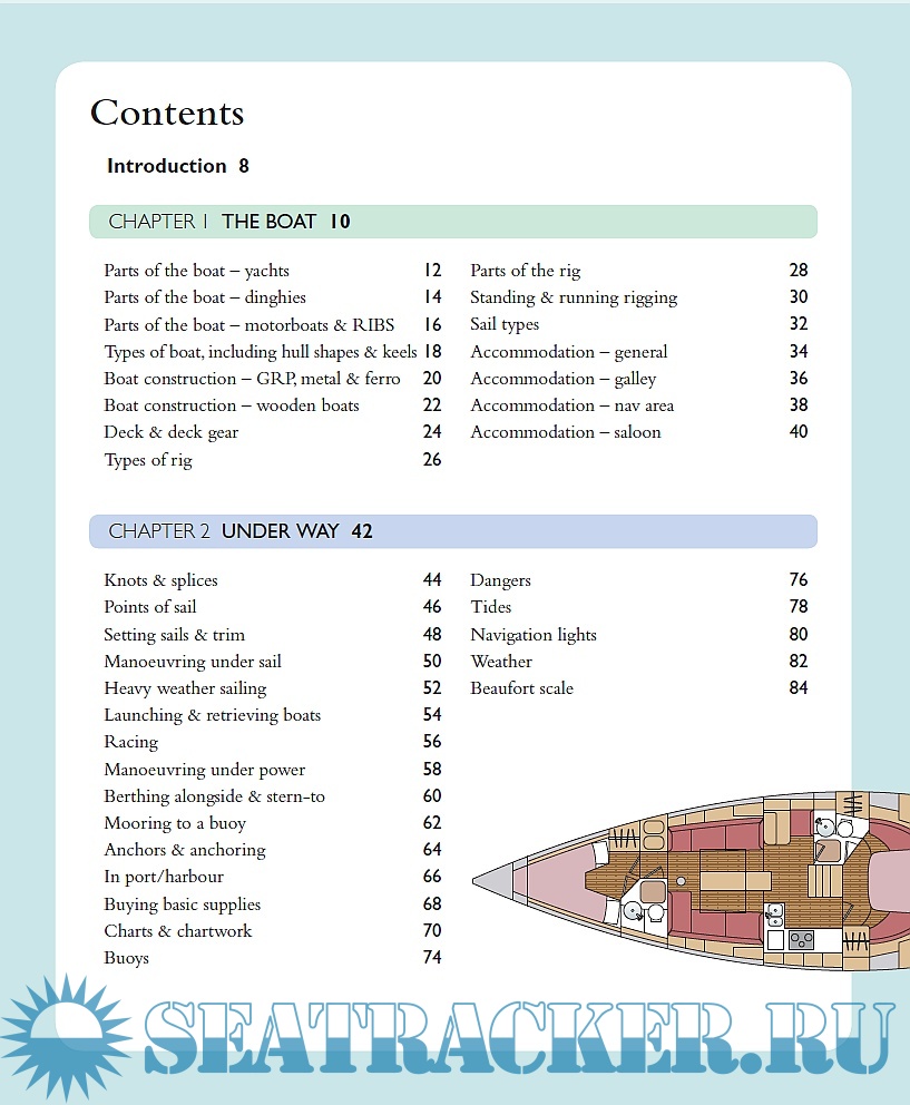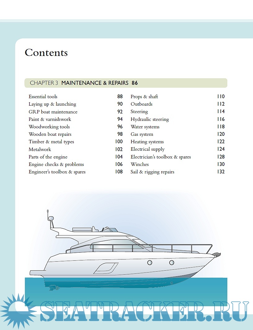 It also includes an extensive range of pictures, to improve rapidity and comprehension. The book is organized into five chapters – The boat, Under way, Maintenance & repairs, Emergencies and General reference – covering a diverse range of subjects that encompass every aspect of sailing and boating, both on and off the water. A chapter on maintenance and repairwork is included.