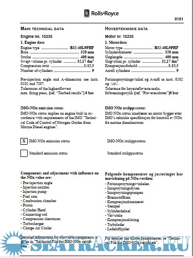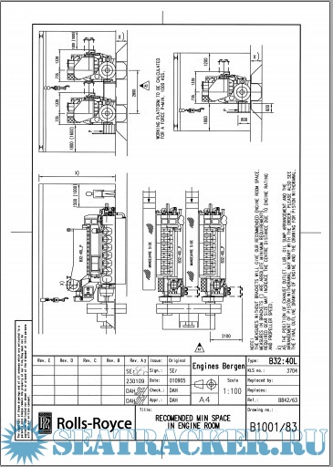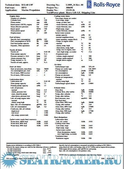 Description: Rolls Royce Bergen Engine Type: B32:40L9PHF controls and main engine service parts details.