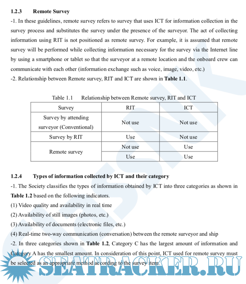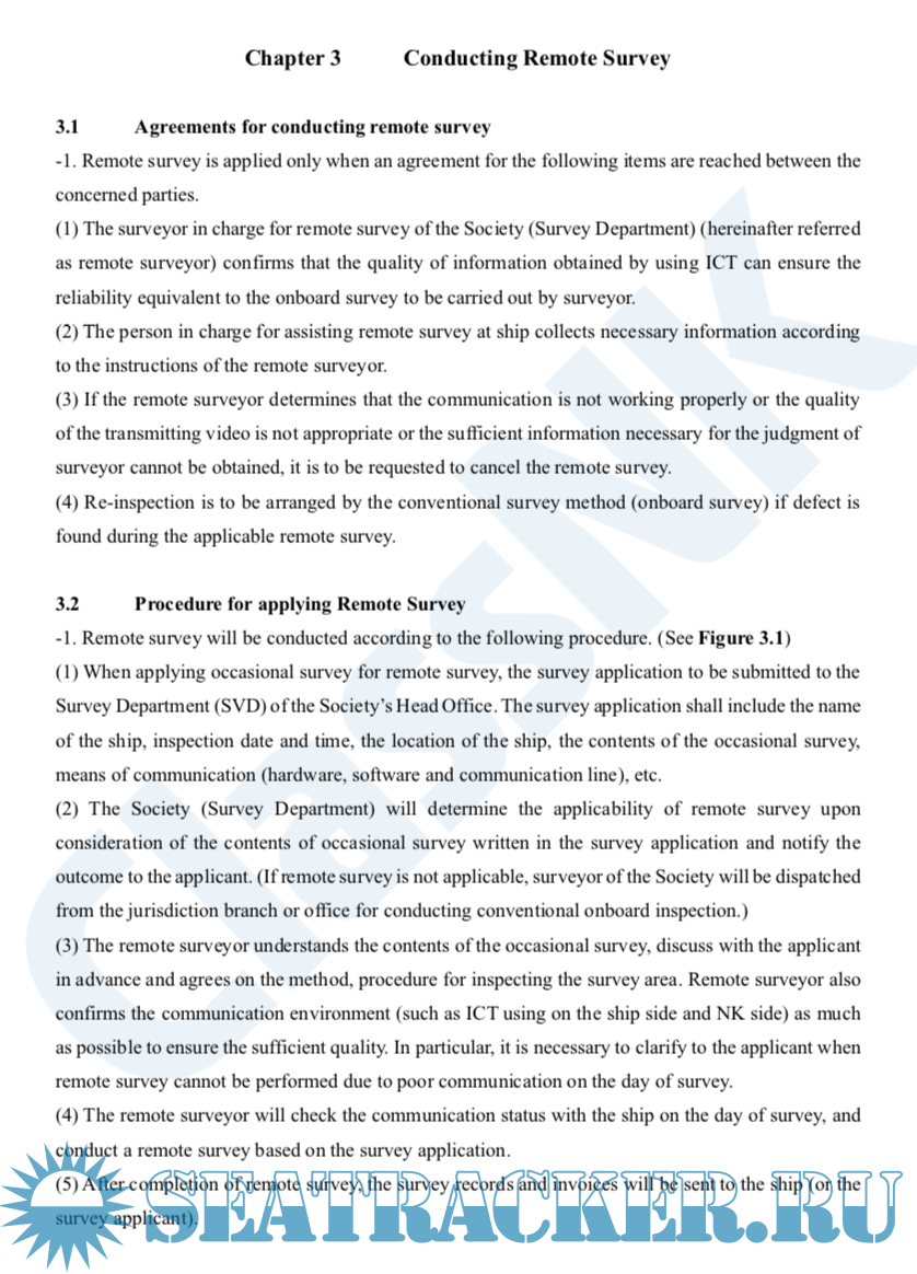 Year: 2021 Language: english Author: ClassNK Genre: Guide Publisher: Class NK Edition: 2 Format: PDF Quality: eBook Pages count: 18 Description: With the recent trend of the Internet of Things (IoT), digitalization of business is progressing, and communication that utilizes communication technology is also spreading. Based on this situation, the Society has been working on the advancement of survey using digital technology as research and development in line with the R&D roadmap published in 2017. For remote survey, the Society has investigated and examined the types of survey that can be applied, the type and amount of information required for remote survey, and the requirements for ICT to be used, ensuring reliability equivalent to conventional witness survey with transparency in the application of remote survey. These guidelines are a summary of these results. These guidelines will be reviewed as necessary in accordance with the progress of related technology development. In line with the issuance of these guidelines, the related rules and guidance for the survey and construction of steel ships were revised in December, 2019. The rules and guidance for occasional surveys and surveys for equipment to be surveyed under the attendance of surveyors have been revised partly so that remote surveys can be applied when the Society recognizes that the necessary information for the survey can be obtained by using ICT. In accordance with these amendments, remote surveys can be applied for occasional surveys subject to compliance with the requirements of these guidelines in cases where it is difficult to dispatch surveyors of the Society or when survey contents are confirmation of minor damages or defects. The implementation of remote surveys depends on the communication capability of the ship, and cooperation of the crew is indispensable. Therefore, in order to carry out remote surveys effectively and efficiently, the communication capability of the ship and the equipment used for remote surveys should be clarified in advance, and procedures for remote surveys should be provided on board. The Society has also made necessary revisions to these guidelines so that the notation “Remote Survey” (abbreviated as RMSV) can be affixed to the classification characters of the ships which are provided with advance preparation for remote surveys. It is hoped that these guidelines will contribute to the realization of a more rational survey of ships for those involved in the maritime industry.