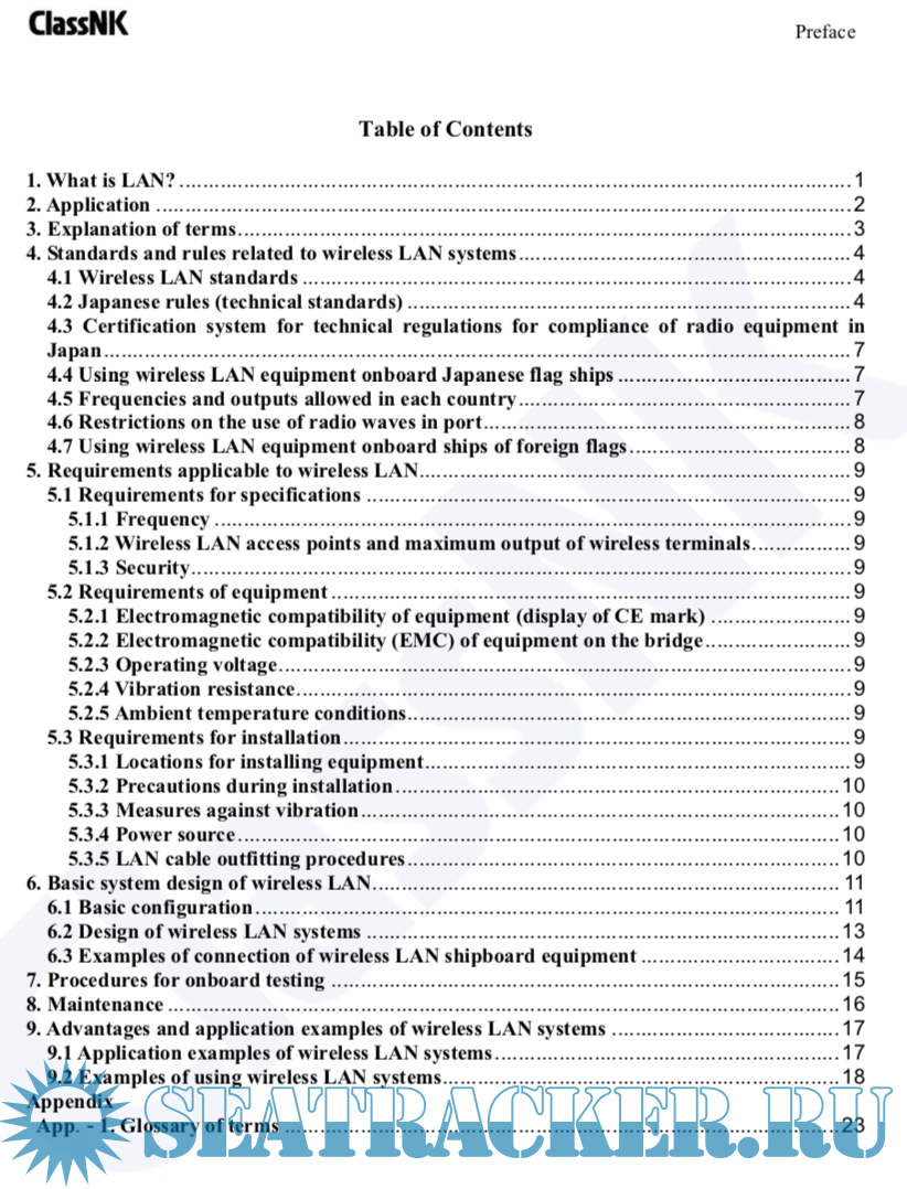 Year: 2011 Language: english Author: ClassNK Genre: Guide Publisher: Class NK Format: PDF Quality: eBook Pages count: 37 Description: Demands for reductions in crew members and greater sophistication of equipment fitted onboard ship started from the eighties, at which time shipboard LAN systems began to be proposed for safe operation of ships. At that time, voyage data and machinery data were collected and integrated, and these data were made usable from control spaces and accommodation spaces. In recent years, the requirement for shipboard LAN systems has been growing with the use of network systems between ship and shore as a result increased use of satellite communications equipment (IMMARSAT) and temperature monitoring of reefer containers, in addition to the functions mentioned above. The diffusion of shipboard LAN systems has been progressing, especially as more sophisticated systemization of operations has become required in research ships and special purpose/survey ships. Additional info: Spanish version in this release: