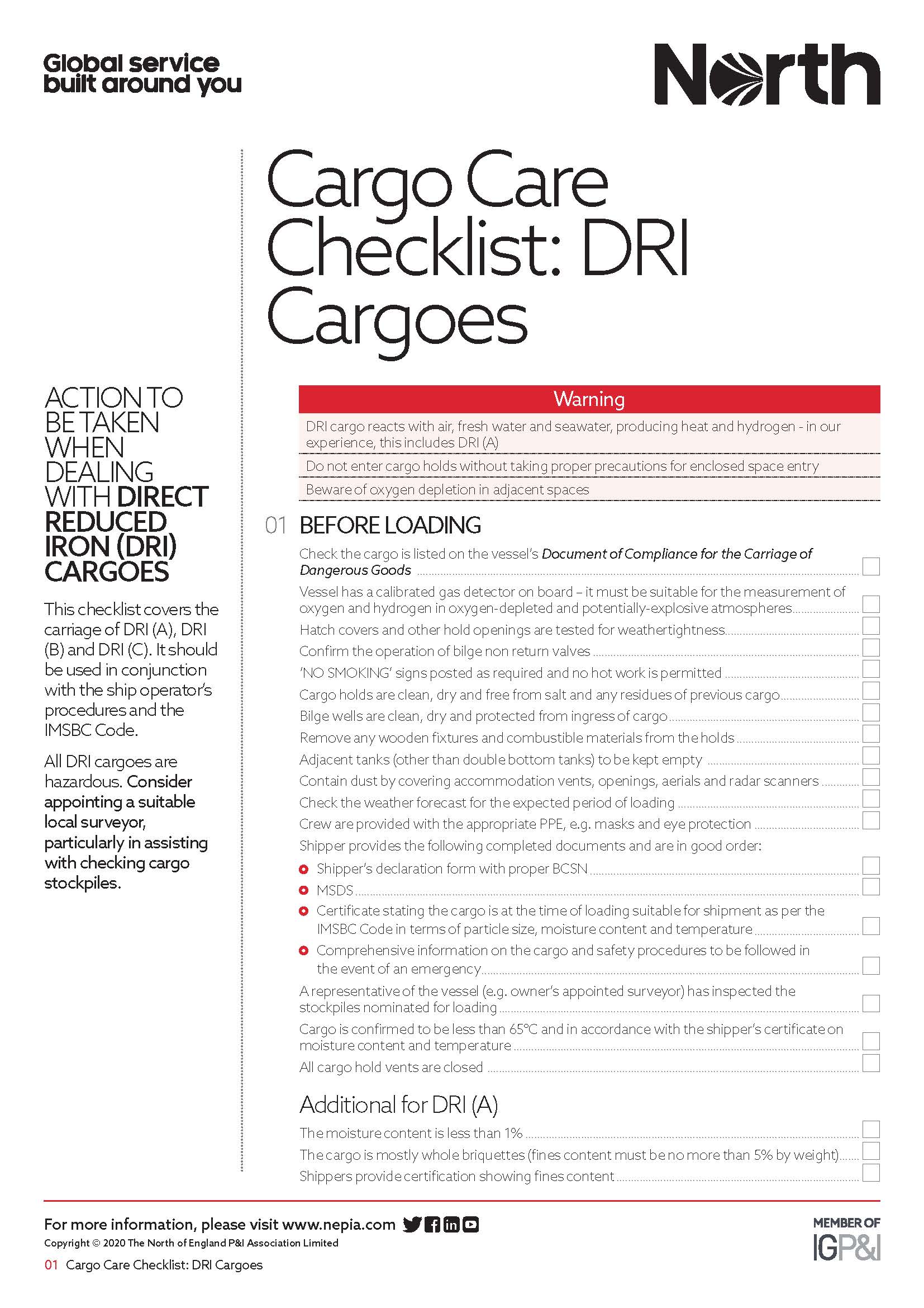 The North has produced new checklists that provide simple and sensible guidance for crew to care for cargo.