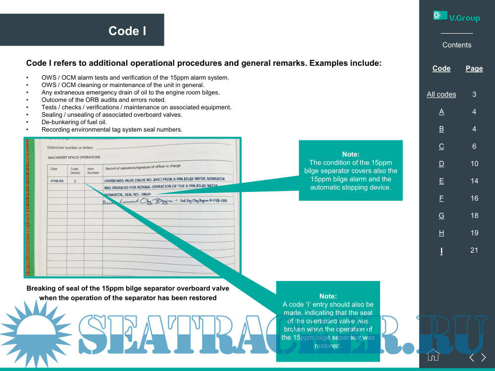 Oil Record Book - Code guide
