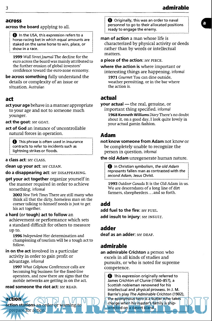 Year: 2004 Language: english Author: Oxford Dictionary of Idioms Genre: Dictionary Publisher: Oxford Dictionary of Idioms Edition: 2nd Format: PDF Quality: eBook Pages count: 352 Description: The aim of the Oxford Dictionary of Idioms is to provide clear definitions of phrases and sayings, to improve English knowledge and awareness. This second edition of the Oxford Dictionary of Idioms maintains the first edition's focus on contemporary and historical phrases, sayings, and proverbs, and uses a combination of definition and explanatory note and illustrative quotation to provide a rounded picture of idiomatic usage. The coverage of the previous edition has been extended by the inclusion of more than 350 new idioms. Many contemporary illustrative quotations, taken from a variety of sources: from novels to travel guides, broadsheet newspapers to magazines, have been added. They help to give the reader a better understanding of how an idiom is used: a typical context, a certain tone, or a particular resonance. A new index section at the end of the book groups together idioms which share a common theme or subject, so giving readers a vivid snapshot of those areas and aspects of life that have generated a particularly rich variety of figurative expressions.