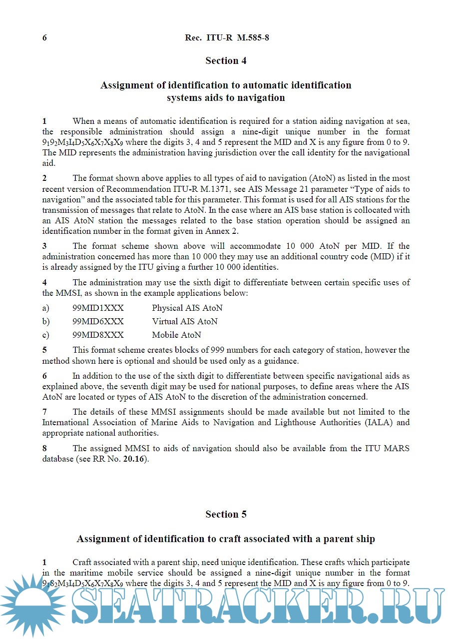 Assignment and Use of Identities in the Maritime Mobile Service (Recommendation ITU-R M.585-8)