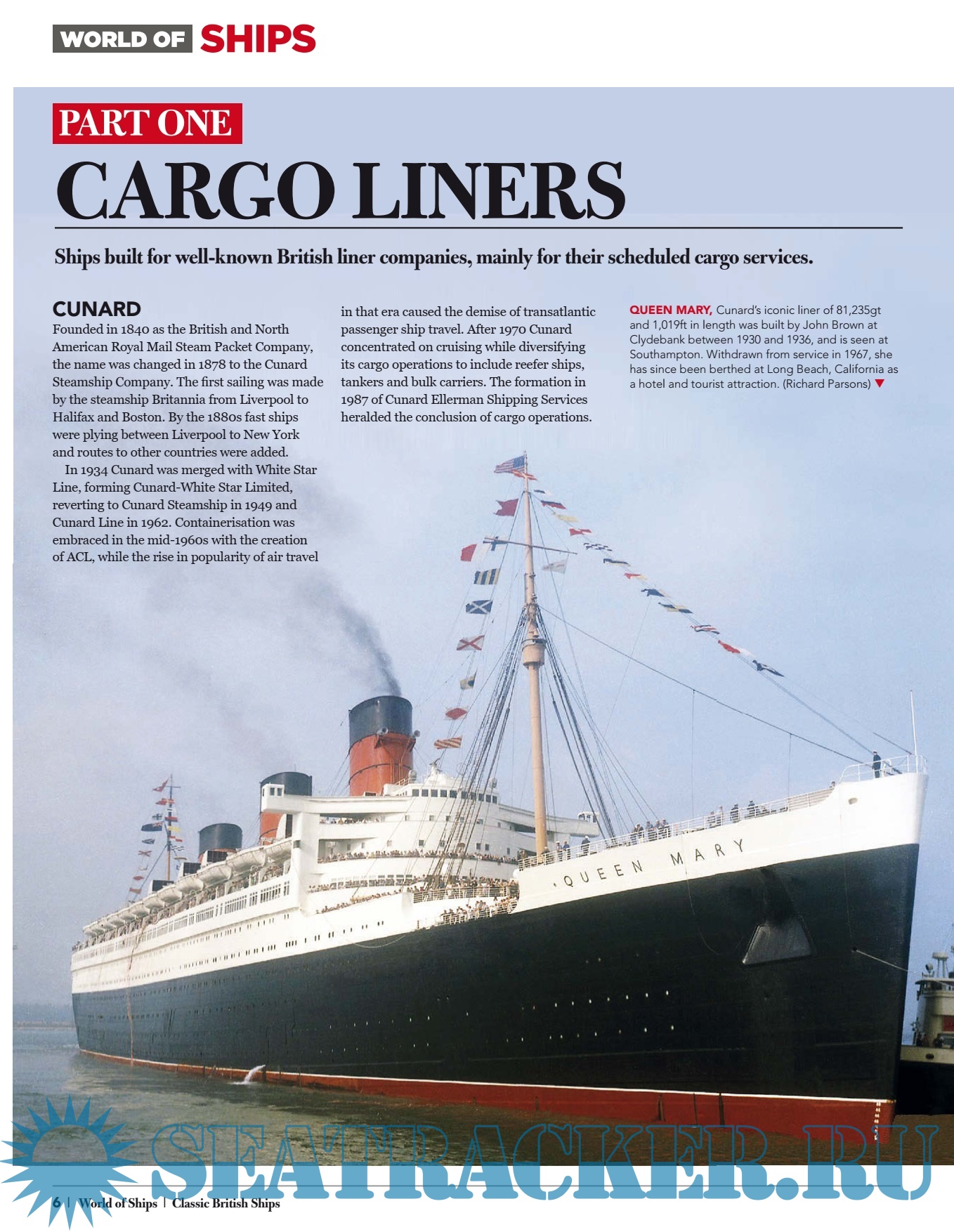 Year: 2017 Language: english Author: Cranfield M. Genre: History Publisher: Kelsey Publishing Format: PDF Quality: Scanned pages Pages count: 100 Description: Classic British Ships. Founded in 1840 as the British and North American Royal Mail Steam Packet Company, the name was changed in 1878 to the Cunard Steamship Company. The fi rst sailing was made by the steamship Britannia from Liverpool to Halifax and Boston. By the 1880s fast ships were plying between Liverpool to New York and routes to other countries were added. In 1934 Cunard was merged with White Star Line, forming Cunard-White Star Limited, reverting to Cunard Steamship in 1949 and Cunard Line in 1962. Containerisation was embraced in the mid-1960s with the creation of ACL, while the rise in popularity of air travel in that era caused the demise of transatlantic passenger ship travel. After 1970 Cunard concentrated on cruising while diversifying its cargo operations to include reefer ships, tankers and bulk carriers. The formation in 1987 of Cunard Ellerman Shipping Services heralded the conclusion of cargo operations