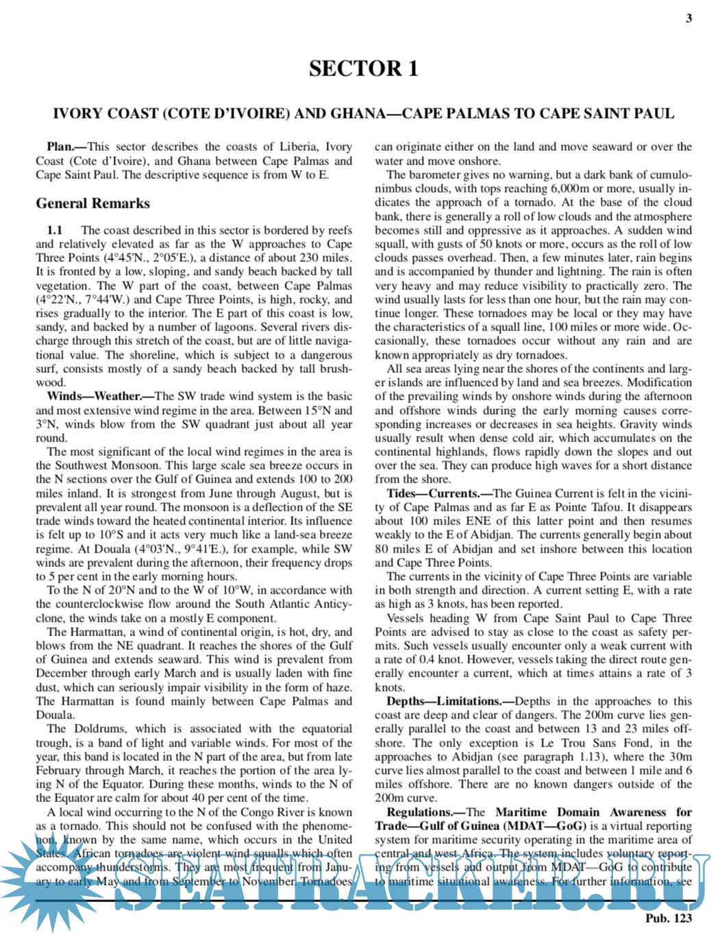 Year: 2021 Language: english Author: National Geospatial-Intelligence Agency Genre: Documentation Publisher: National Geospatial-Intelligence Agency Edition: 60 Format: PDF Quality: eBook Pages count: 216 Description: Pub. 123, Sailing Directions (Enroute) Southwest Coast of Africa, Sixteenth Edition, 2017, is issued for use in conjunction with Pub. 160, Sailing Directions (Planning Guide) South Atlantic Ocean and Indian Ocean. The companion volume is Pub. 124. Digital Nautical Chart 1 provides electronic chart coverage for the area covered by this publication. This publication has been corrected to 18 November 2017, including Notice to Mariners No. 46 of 2017. Subsequent updates have corrected this publication up to 30 January 2021, including Notice to Mariners No. 5 of 2021.