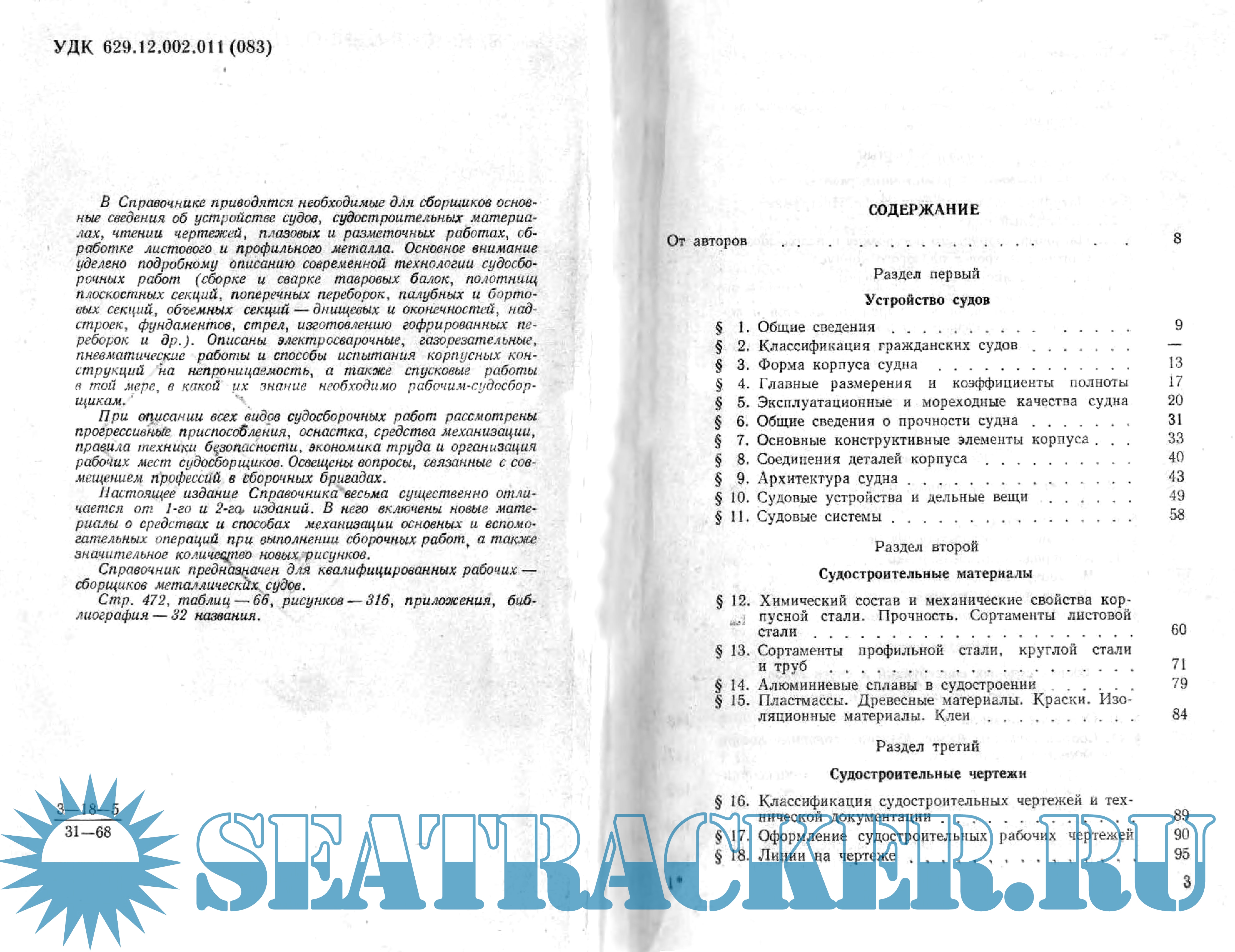 Описание: В Справочнике приводятся необходимые для сборщиков основные сведения об устройстве судов, судостроительных материалах, чтении чертежей, плазовых и разметочных работах, обработке листового и профильного металла.