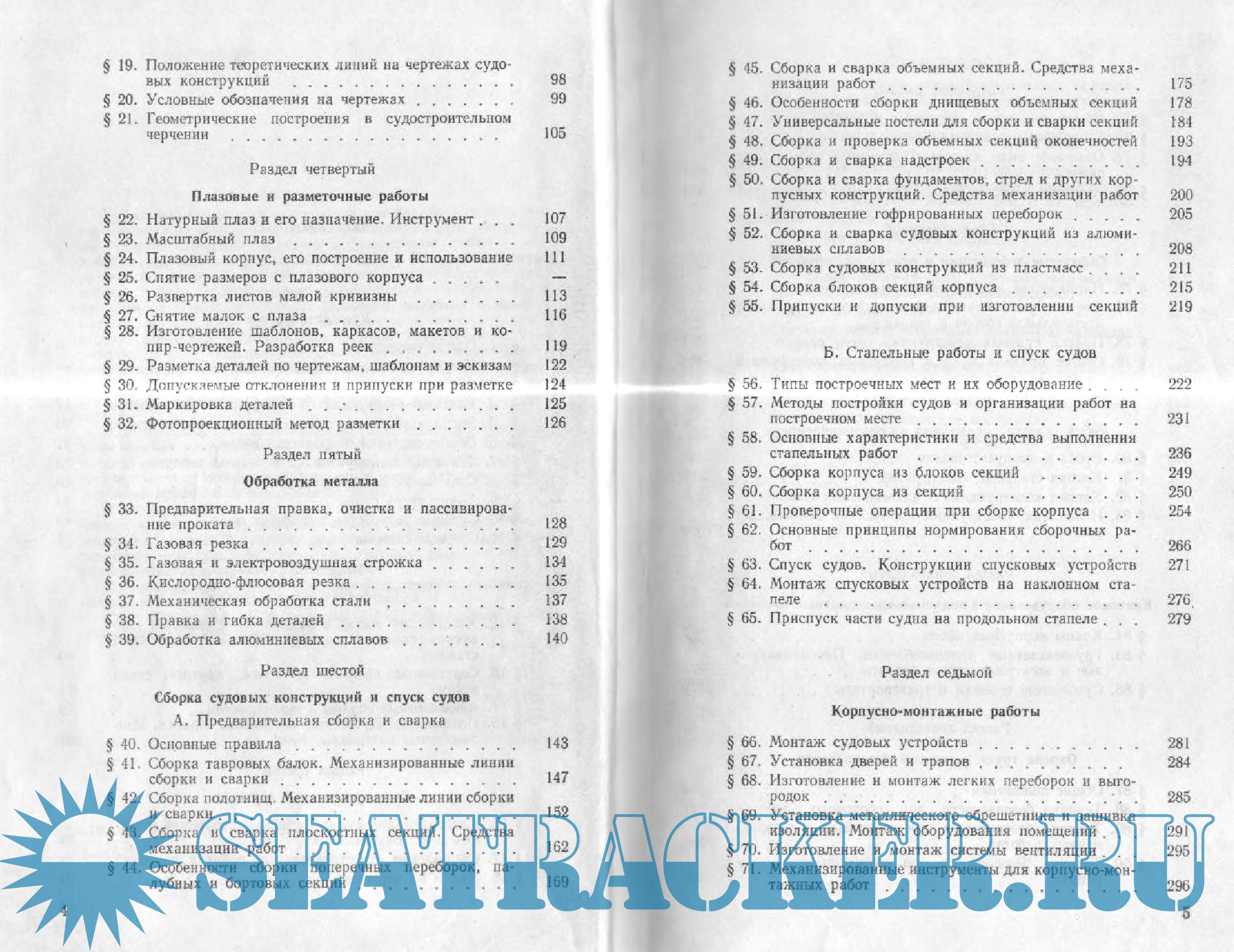 Основное внимание уделено подробному описанию современной технологии судосборочных работ (сборке и сварке тавровых балок, полотнищ плоскостных секций, поперечных переборок, палубных и бортовых секций, объемных секций - днищевых и оконечностей, надстроек, фундаментов, стрел, изготовлению гофрированных переборок и др.).