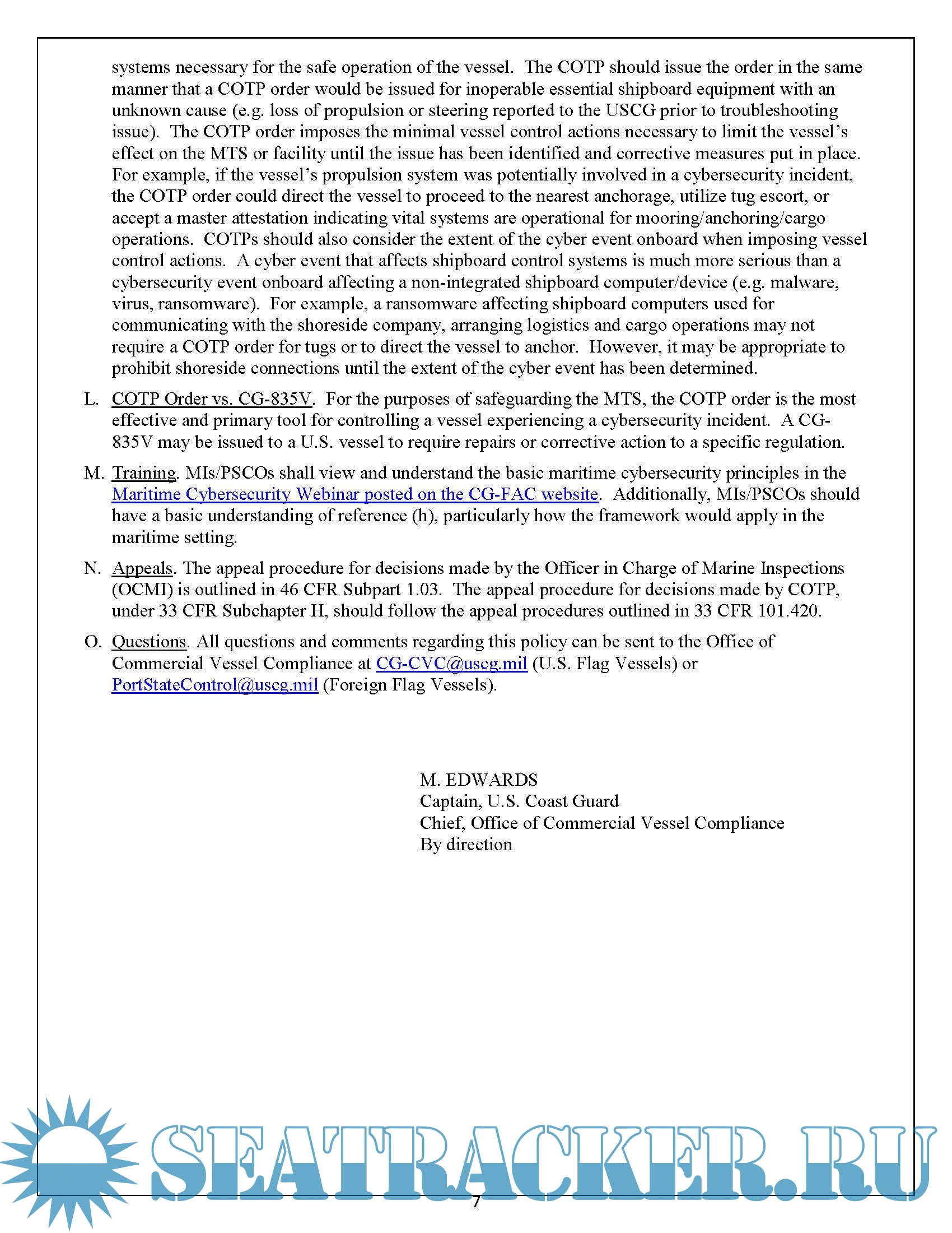 the USCG guidance on Vessel Cyber Risk Management
