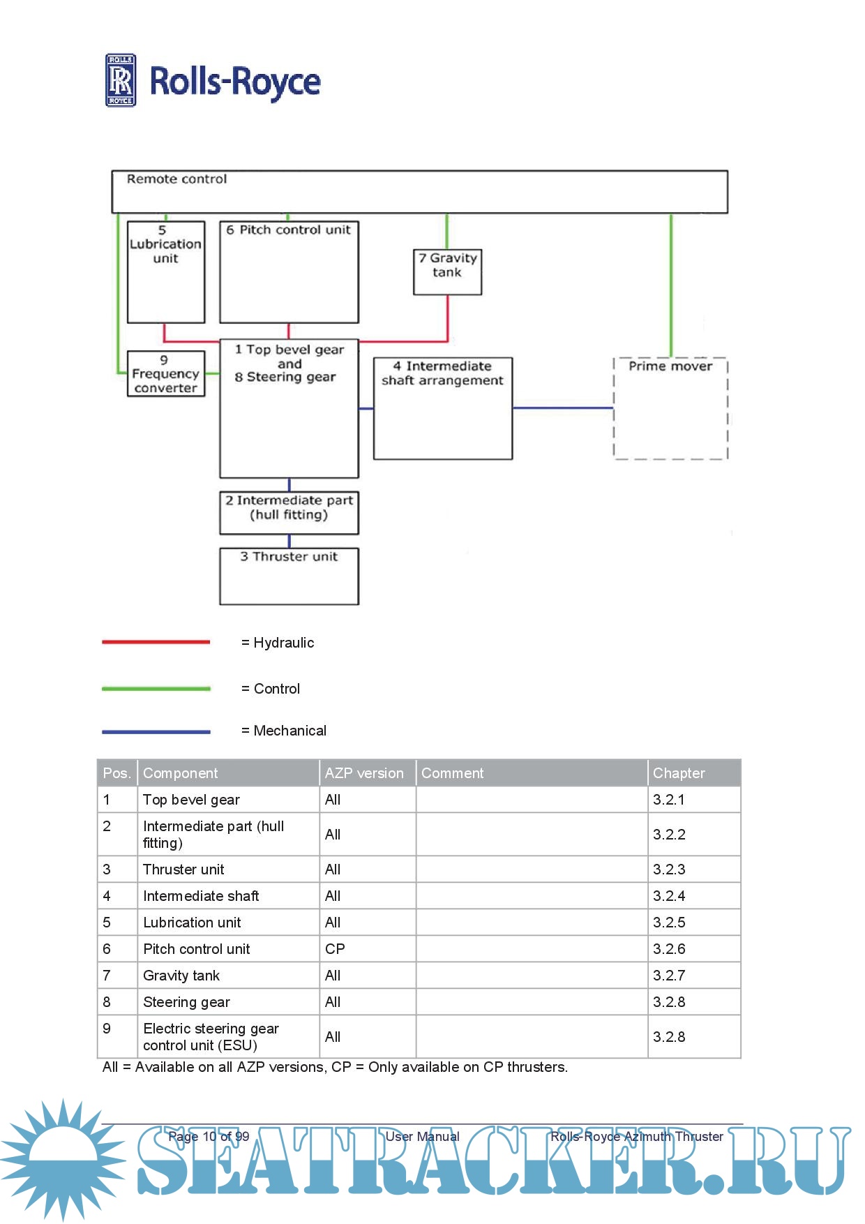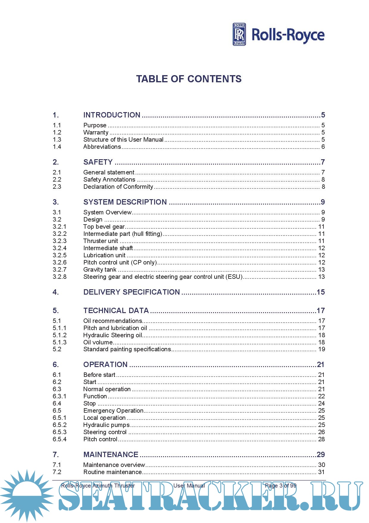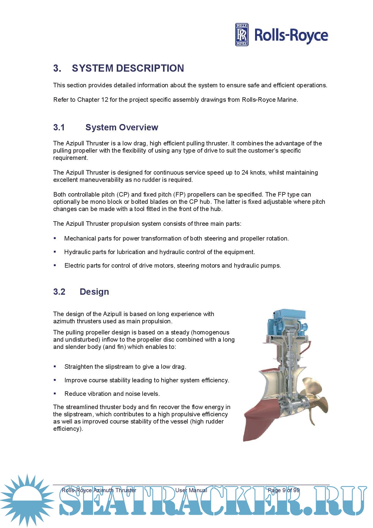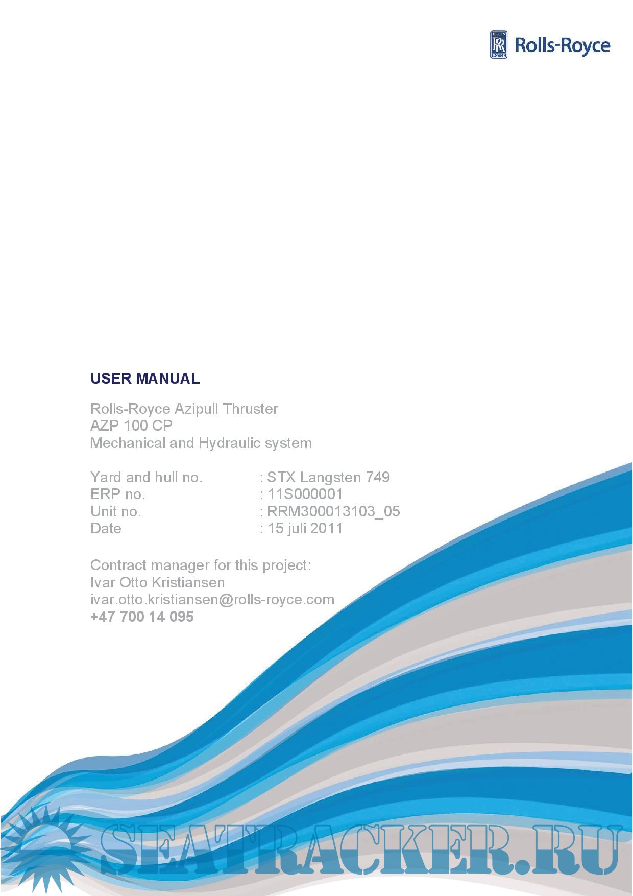 Description: The User manual provides the information necessary to operate and maintain the Rolls-Royce Azipull Thruster safely and correctly and must always be available to the technical staff.